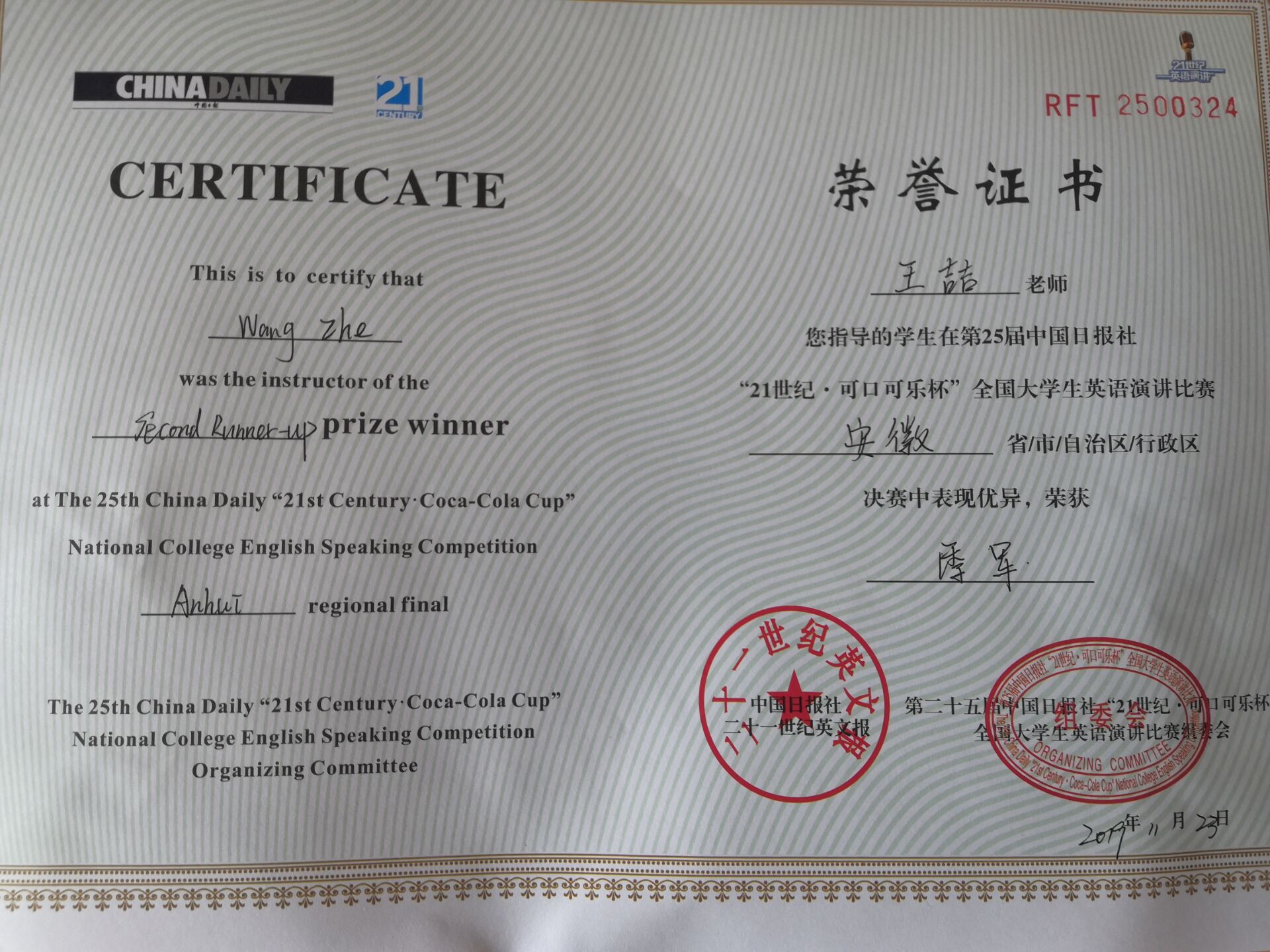 BB贝博艾弗森官方网站学子在第25届中国日报社21世纪杯全国大学生英语演讲大赛中荣获安徽省季军