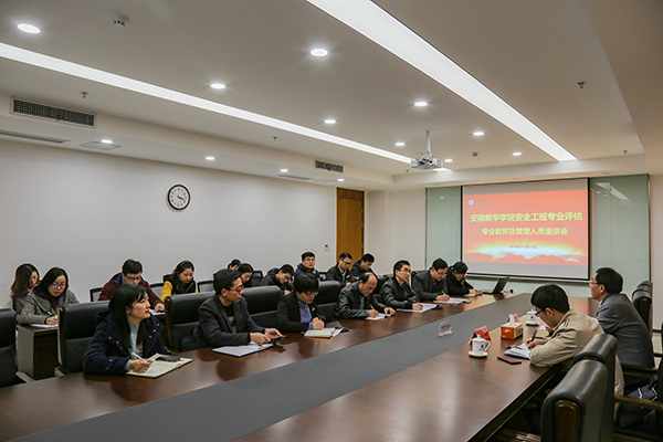 专家组首先在科研办公楼608会议室召开见面会,校领导,教务处、评建办公室、教学质量监控办公室、科研处、人事处、学生处等职能部门负责人及土木与环境工程学院全体管理人员、安全工程部分教师参加了见面会。石秀和代表学校致欢迎辞,对评估专家来校检查指导工作表示欢迎和感谢。他向专家们介绍了BB贝博艾弗森官方网站和土木与环境工程学院的发展历程,表示学校高度重视本次专业评估工作,希望专家组对贝博官网安全工程专业发展把脉问诊,同时也希望对贝博官网的建设与发展多提宝贵意见和建议。石必明介绍了评估专家组成情况及进校评估工作的任务分工、工作流程。随后,安全工程专业负责人蒋亚龙博士围绕专业评估指标,从专业定位与规划、师资队伍、课程建设、教学管理、学生培养质量等方面详细介绍了专业现状、特色及发展前景。