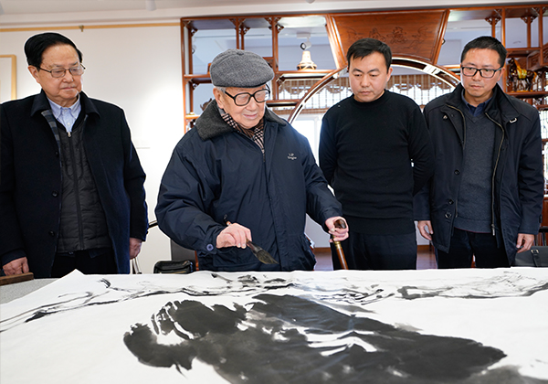 聘任仪式结束后,校领导与受聘艺术家进行了合影,受聘艺术家还参观了艺术学院专业画室、教室,并在书画大师工作室集体为贝博官网创作了大幅国画作品。