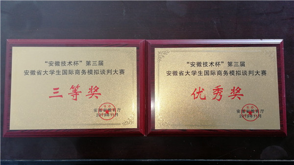 BB贝博艾弗森官方网站学子参加2019年“安徽技术杯”大学生国际商务模拟谈判大赛荣获三等奖