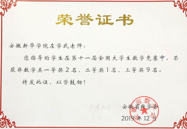 自第一届全国大学生数学竞赛开办以来,学校一直鼓励学生踊跃参加课外竞赛活动,旨在加强学生创新意识和应用能力的培养,不断提高学生分析、解决实际问题的能力,提升学生的整体学术竞赛能力,致力于培养高素质人才。