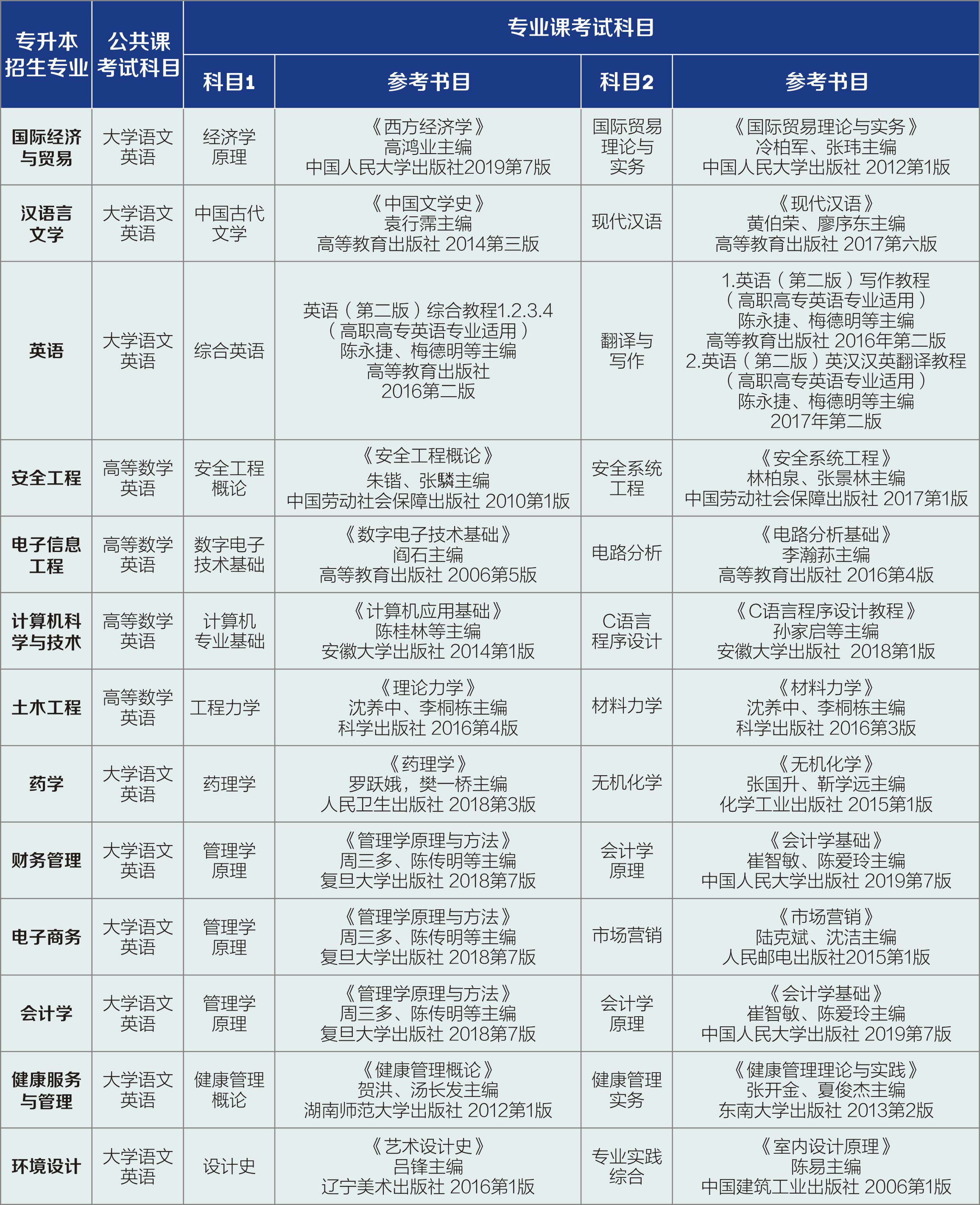 BB贝博艾弗森官方网站2020年全日制普通专升本分专业计划及参考书目公布