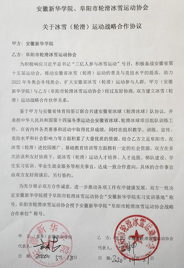 贝博官网与阜阳市轮滑冰雪协会签订冰雪(轮滑) 战略合作协议