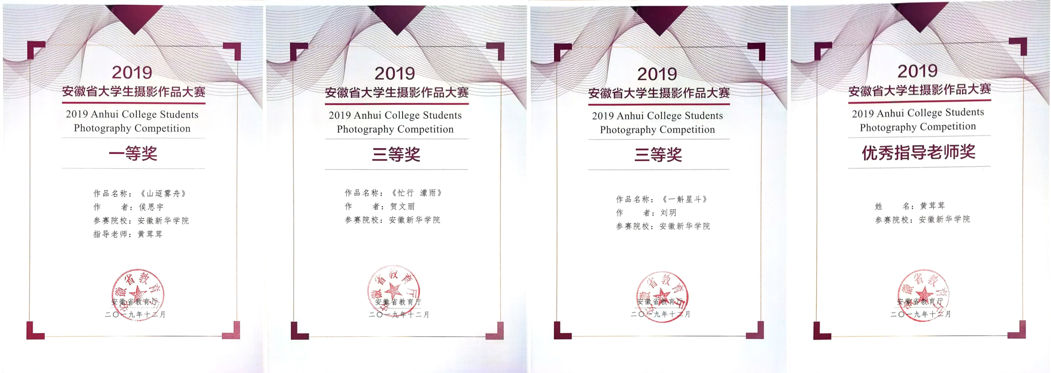 本网讯(通讯员:王伟灿)日前,安徽省大学生摄影作品大赛圆满落幕,贝博官网报送的3项作品从全省51所高校2000余件作品中脱颖而出并斩获多个奖项。其中,侯思宇同学拍摄的作品《山迢雾舟》荣获艺术类一等奖;刘玥同学拍摄的作品《一斛星斗》荣获艺术类三等奖;贺文丽同学拍摄的作品《忙行 濛雨》荣获纪实类三等奖;黄茸茸老师荣获优秀指导老师奖。