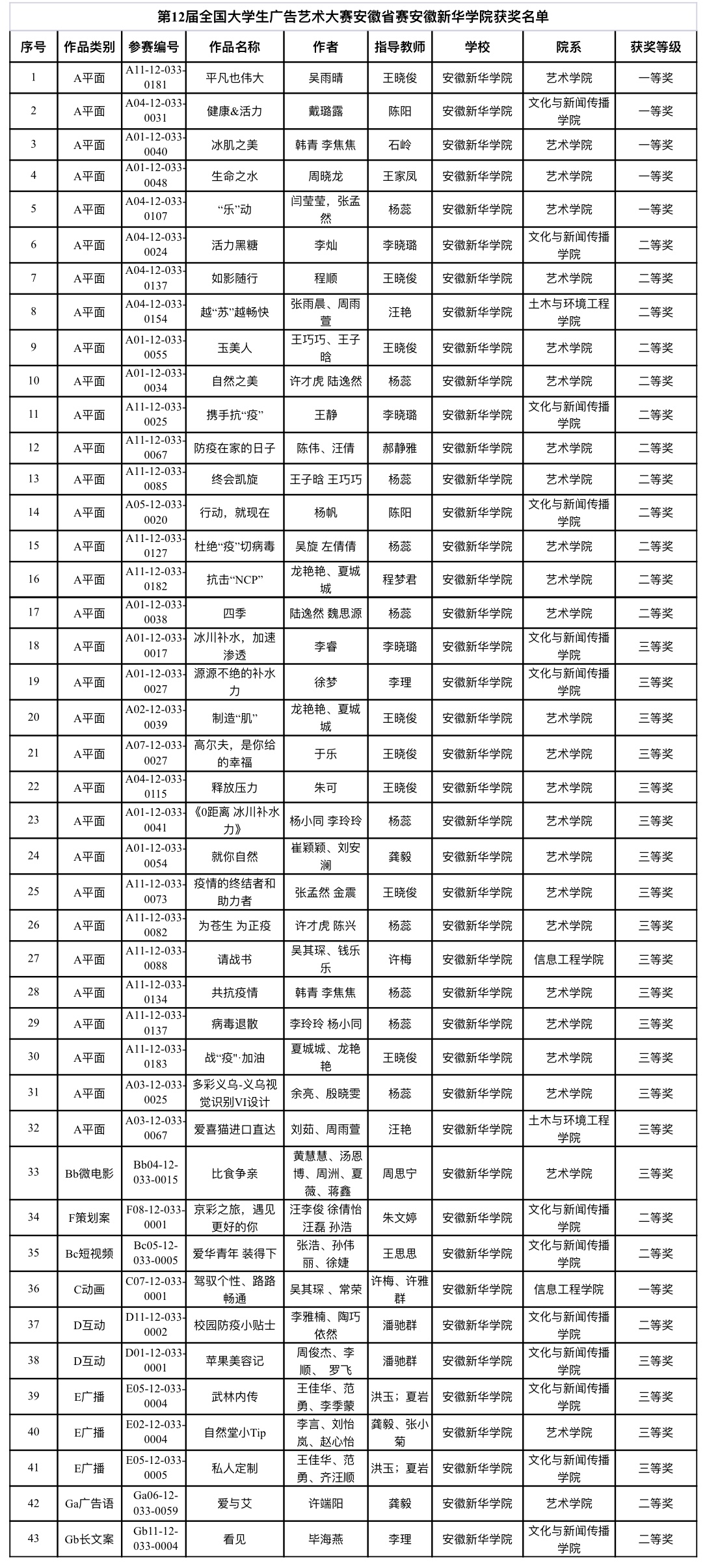 贝博官网学子在2020年(第12届)全国大学生广告艺术大赛安徽赛区再创佳绩