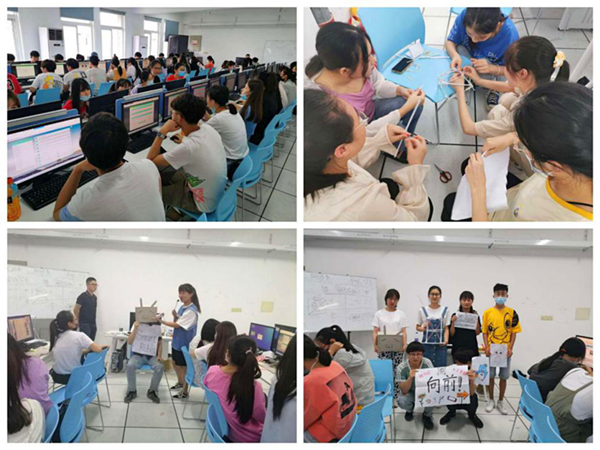 在创新创业实践方法论的指导下,创业团队根据问题、移情、定义、创意、原型、展示五步法,设计出“找书机器人”、五彩学士帽等创新实物原型,以及智能废品回收机、创意解压馆、线上VR演唱会等商业项目,各个团队在课堂上依次召开产品说明会和项目路演。本学期受疫情影响,贝博官网校企共建实训课程采取线上与线下同时开课的方式,以新道云创新创业教学平台为媒介,实现互动交流和双师同台。
