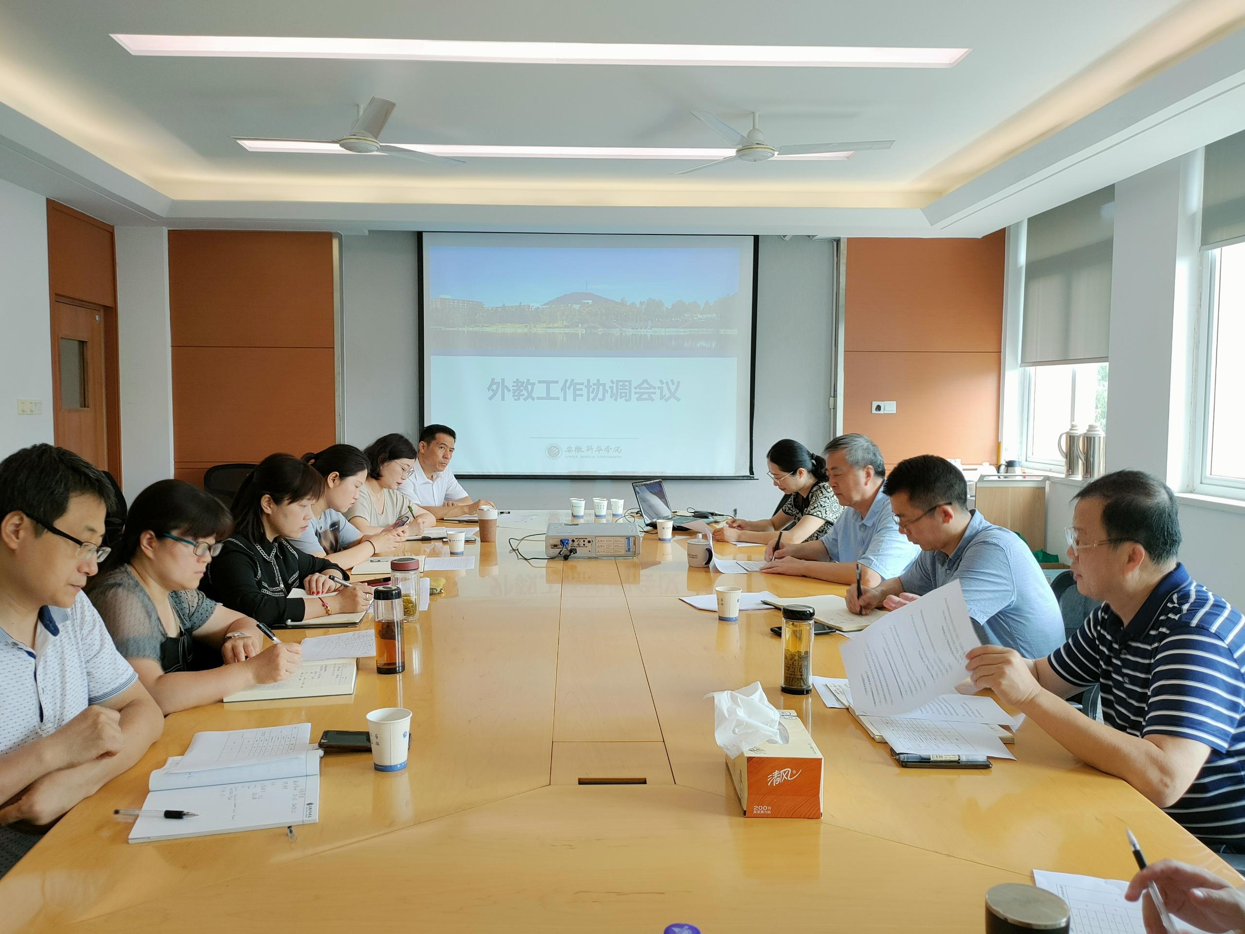 本网讯(通讯员:徐梦芸)为进一步发挥外教在学校教学科研中的积极作用,不断优化贝博官网师资结构,提升学校国际化教学水平,加强并完善外教管理,提高外教聘用效益,实现外教管理规范化和制度化目标,国际交流合作处于7月31日组织国际教育学院、商学院、外国语学院和财会与金融学院以及人事处、教务处等相关单位,就学校外教聘请、教学以及管理等工作进行了协商协调。副校长方纯洁参会,会议由国际处处长徐鸣主持。