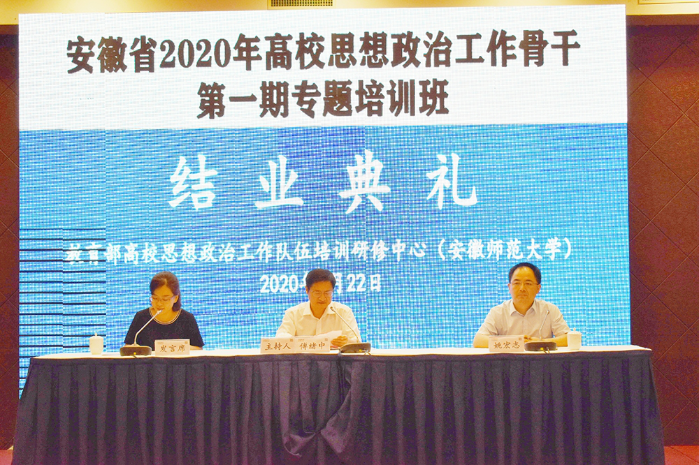 本网讯(通讯员:徐志凤)为深入学习宣传习近平新时代中国特色社会主义思想,全面落实全国全省教育工作部署,进一步推动我省高校思想政治工作专门力量建设,8月19日-22日,教育部高校思想政治工作队伍培训研修中心(安徽师范大学)在安徽芜湖举办安徽省2020年高校思想政治工作骨干第一期专题培训班,全省约55所高校的150余名学员参加此次培训。贝博官网选派商学院副院长徐志凤、外国语学院院长助理陈丽、艺术学院院长助理彭智参加。