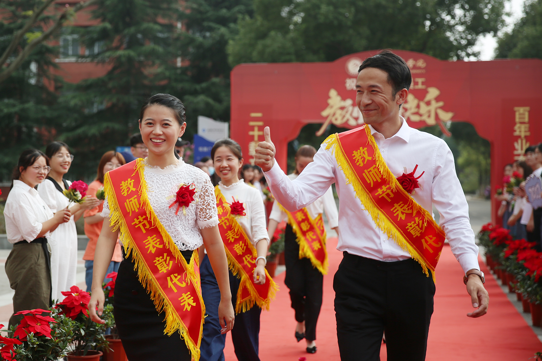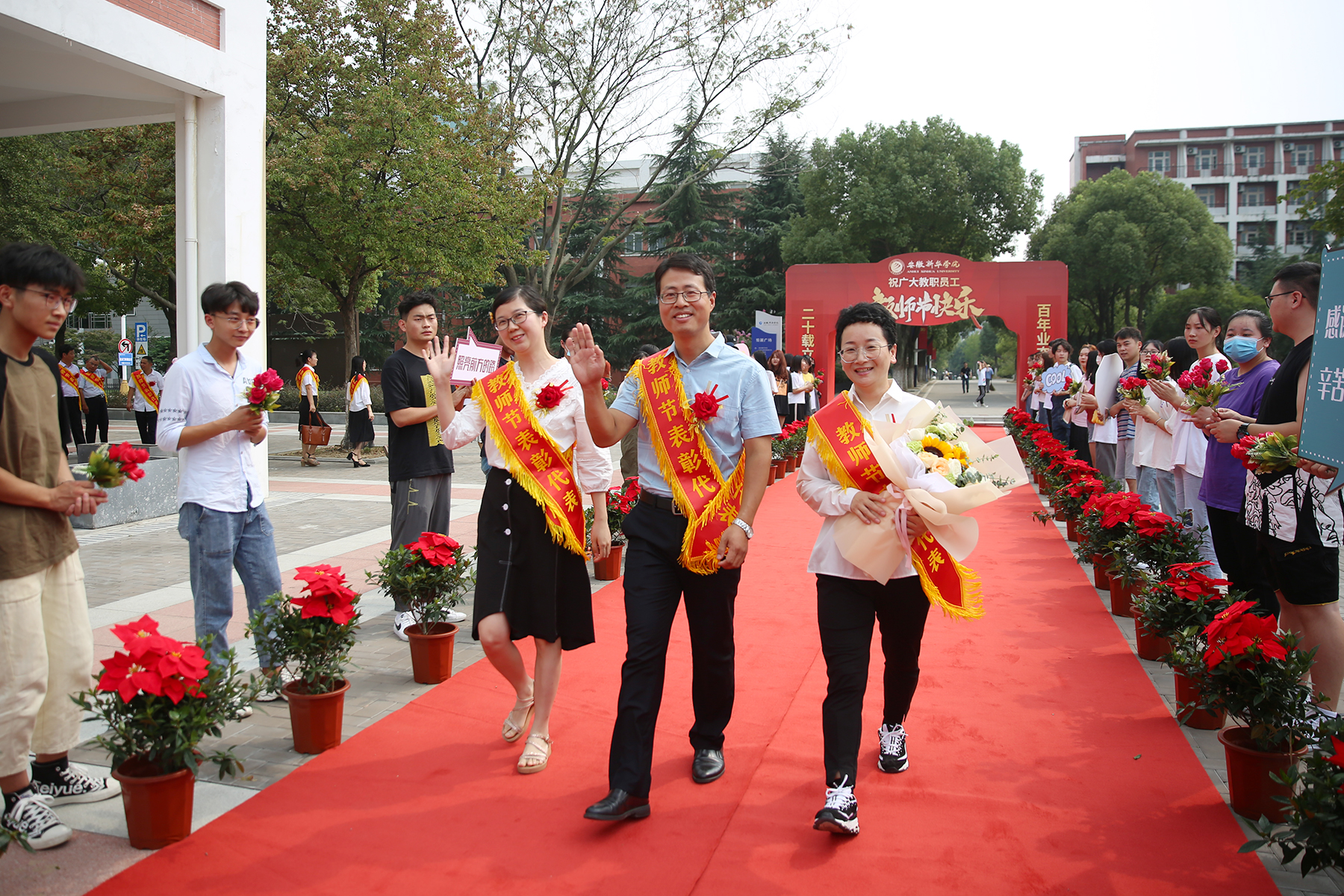 在蜀麓广场,红毯“走秀”拉开了表彰大会的序幕,老师们迈着自信、从容的步伐,在掌声和欢呼声中走过红毯。下午3时,表彰大会正式开始,校长石秀和宣读教师节贺信,向广大教职员工致以节日的祝贺和亲切的慰问。贺信中提到:“教师是教育事业的追梦人,贝博官网每位教师都是怀揣着对教育工作的热爱加入到这个大家庭,专心执教、潜心育人,在学校发展的每一步都镌刻了永恒的记忆!经过全体教职员工的共同努力,新华集团办学实力显著增强,已经形成了以高等教育为龙头,职业教育、基础教育、教育培训齐头并进的良好局面,各教育单位在校园建设、学科专业优化、师资队伍建设以及人才培养模式创新等方面均取得了优异成绩,受到学生与家长的信赖,受到各级党委、政府的褒奖。”