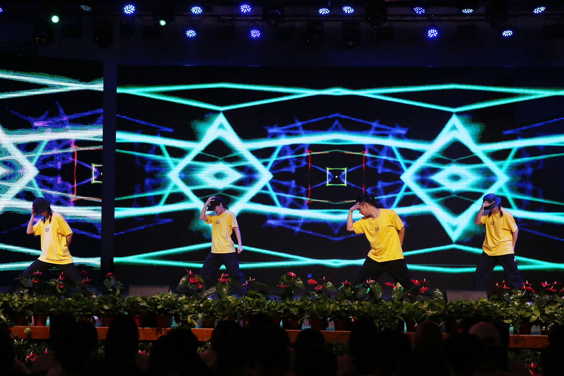 紧接着,金日老师和同学们一起带来了动感十足的街舞表演——《这就是青春》。整齐有力的动作,充满朝气的面孔,富有节奏的律动,展现出了属于华园学子的青春朝气。