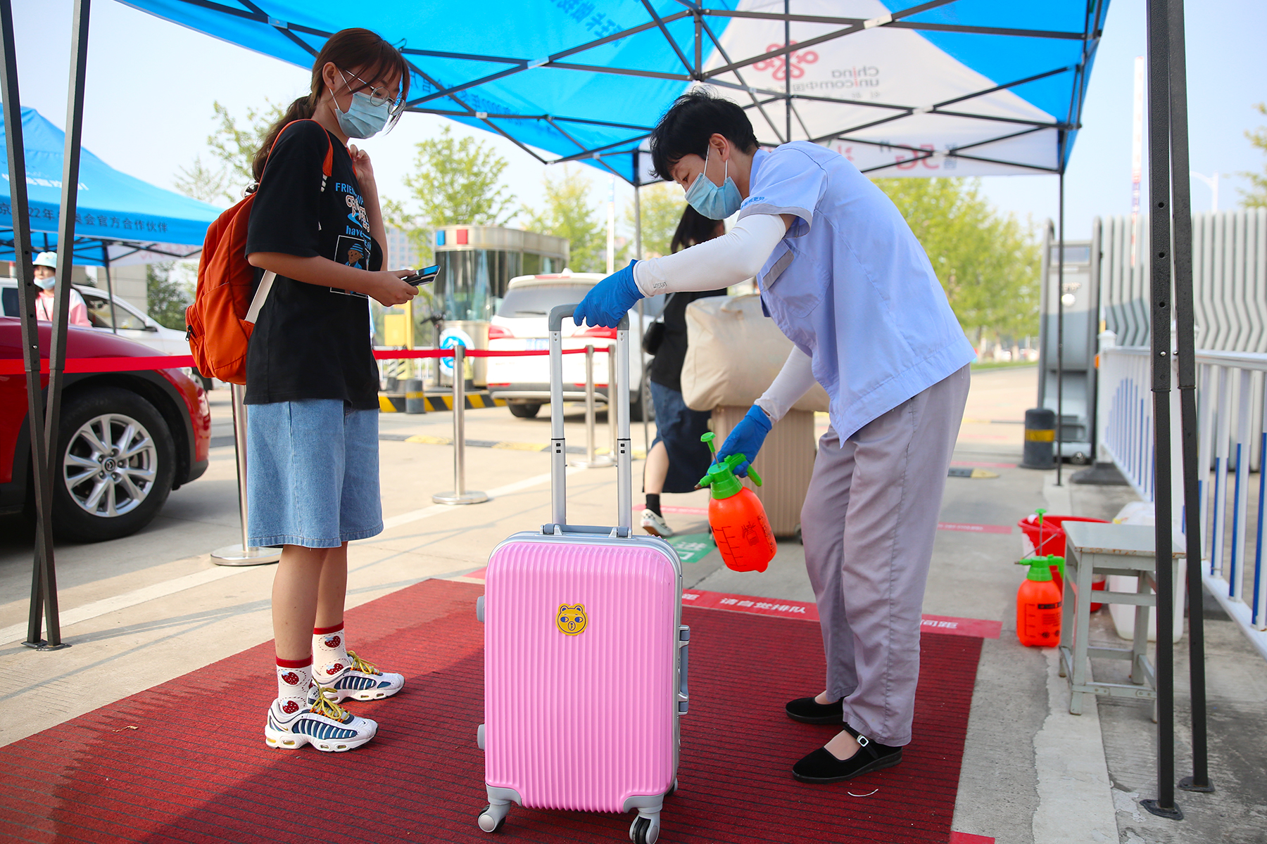 贝博官网高度重视开学准备工作,按照上级部门疫情防控相关规定和要求,入校当天,贝博官网东门、西门开设专用通道,新生进校须保持1.5米以上距离排队。在工作人员的引导下,按照分流通道和地面标识间隔排队,实施“一测二核三查四通过”,即测量体温、核验身份、查验健康码,符合条件的学生在洗手消毒、行李消毒之后,有序进入校园。