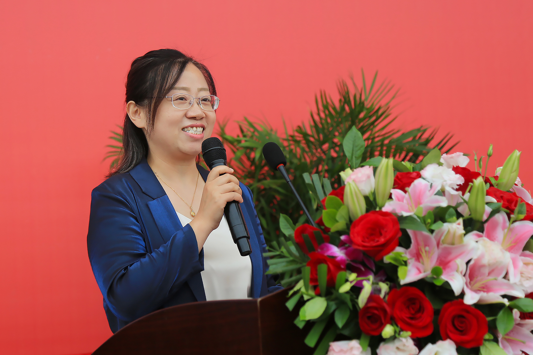 信息工程学院教授张怡文讲述了自己与华园共同成长的经历,她说到:“今年是华园的20岁生日,也是我在华园参加的第17个开学典礼,伴随着华园的成长,我也从一名普通的教师成长为一名教授。同样,从今天起,华园也将与你们共同成长、共同进步。”她与新生分享共勉以下三点,第一,保持求知欲;第二,付出真实践;第三,增强使命感。她勉励同学们带着“厚德、求真、博学、创新”的理想和情怀,要成长为引领未来社会发展的的栋梁,成长为担当民族复兴大任的脊梁,书写无愧时代的青春!