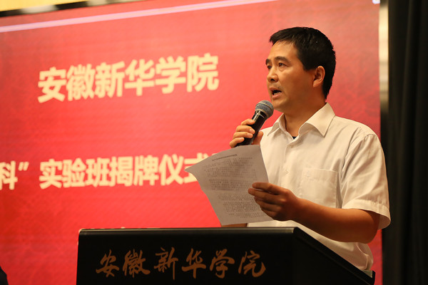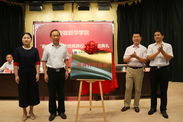 随后,副校长杨世国、质量监控办主任李志远、商学院院长陆克斌、财会与金融学院副院长濮明月共同为“新商科”实验班揭牌。