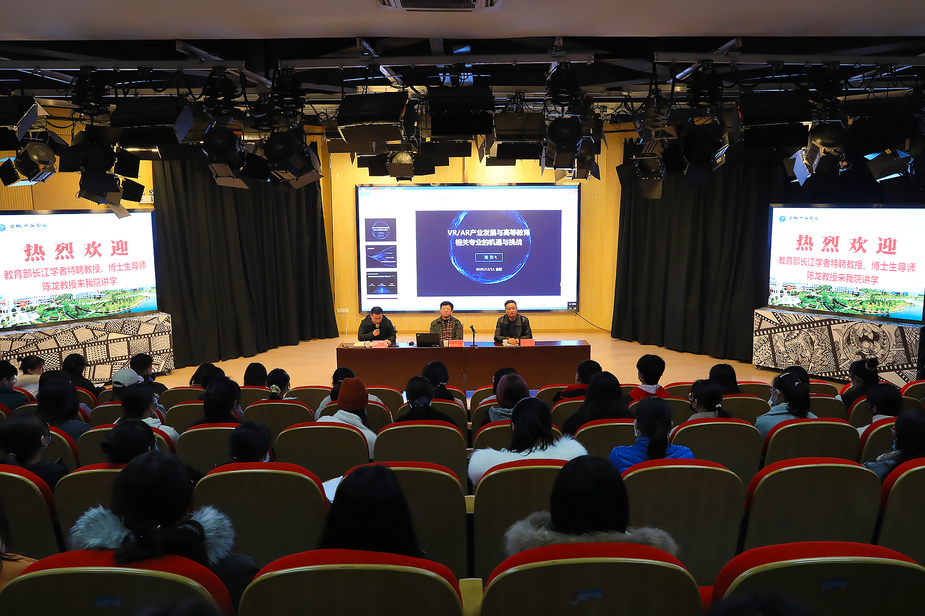 本网讯(通讯员:魏亚玲、马银玥 摄影:翟漱文)12月11日下午,苏州大学传媒学院执行院长、教育部长江学者特聘教授、博士生导师陈龙应邀莅临贝博官网,开展了题为“VR/AR产业发展与高等教育相关专业的机遇与挑战”的专题讲座。近200人聆听了本次讲座,讲座由文化与传媒学院院长助理王鹏主持。