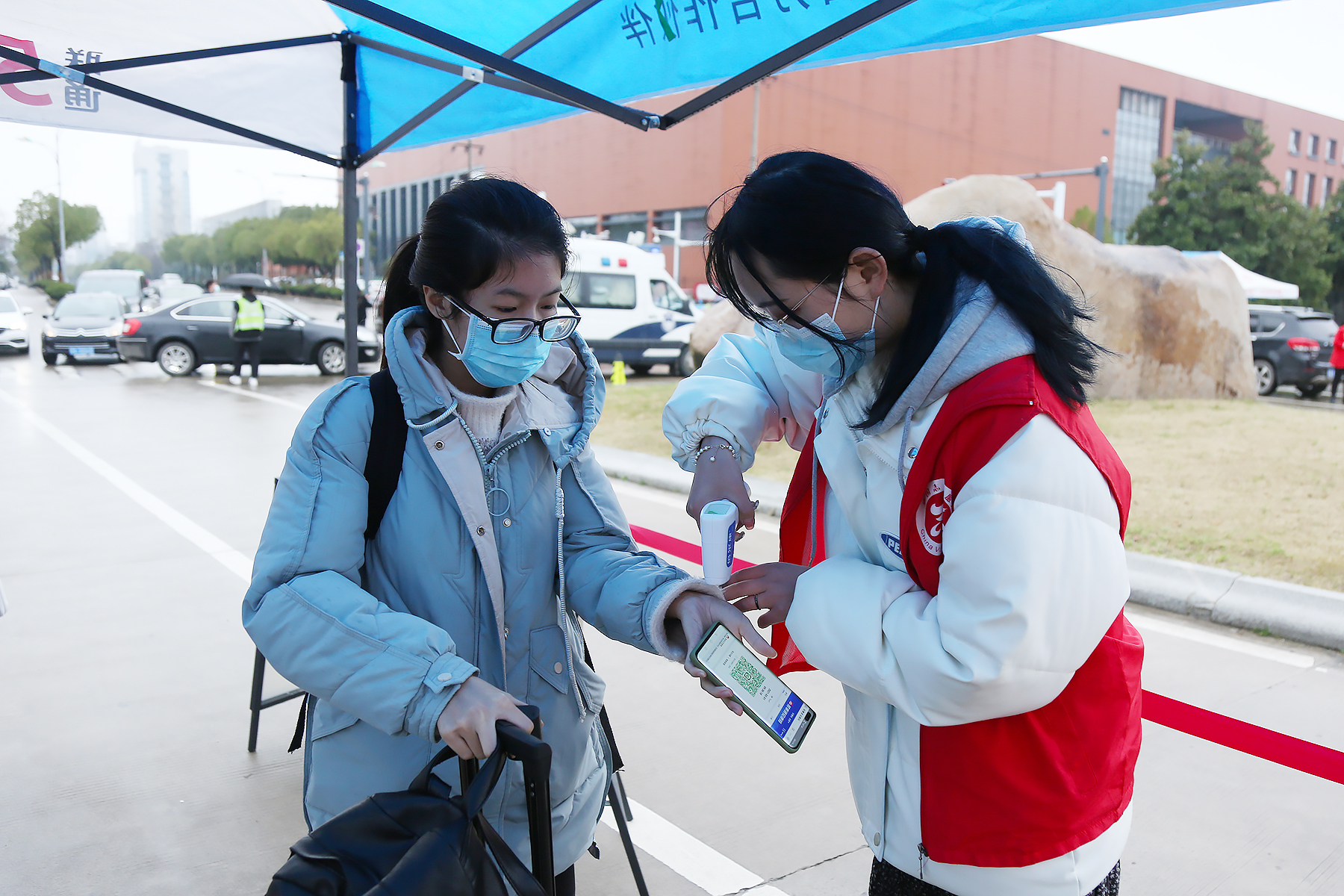 入住登记前,宿管员有条不紊地再次核验身份,开展测温、登记等工作,并叮嘱同学们相关注意事项。整个返校报到流程有条不紊,井然有序。