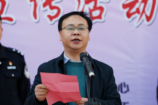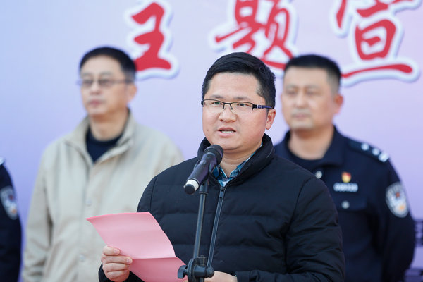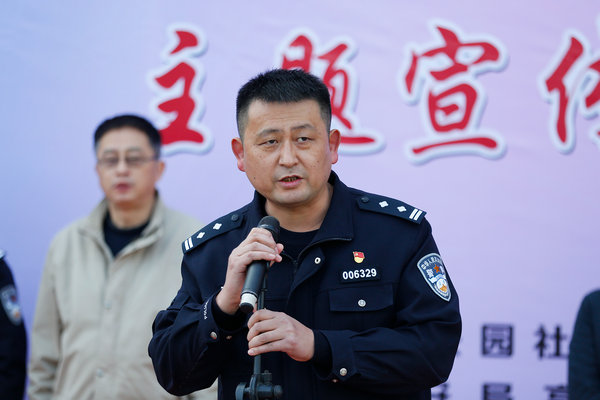 丁科为启动仪式致辞,他指出建设平安“高新”,需要大家共同努力,希望广大师生积极参加各类反诈骗公益活动,提高安全防范意识,做好防火防盗防诈骗,加强邻里守望,努力把我们的校园变成更加和谐、美丽的家园。