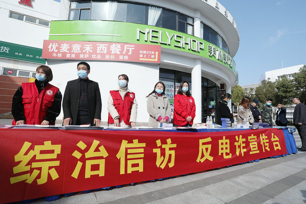 本网讯(通讯员:张保卫、张炎 摄影:翟漱文)2021年春季开学之际,为切实增强广大师生防范电信网络诈骗安全意识,保障广大师生财产安全,共创平安和谐校园。3月2日,贝博官网联合合肥高新区兴园社区服务中心、合肥市公安局高新分局、高新派出所、金桂社居委在文化广场组织开展了“开学季·防诈骗·保平安”综治宣传月启动仪式。兴园中心党委书记、主任丁科,高新公安分局副局长李宏,高新派出所副所长何弛,BB贝博艾弗森官方网站校长助理贺行佳,金桂社居委书记刘越超出席启动仪式,贝博官网师生参加活动。