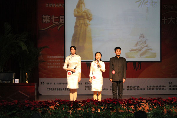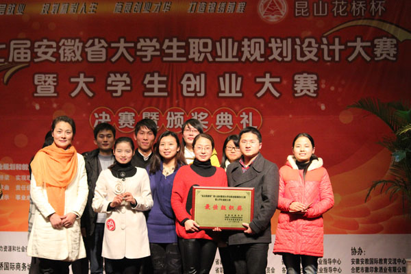 本网讯(通讯员 侯翔)12月15至16日,由安徽省教育厅、安徽省人力资源和社会保障厅、共青团安徽省委主办的“昆山花桥杯”第七届安徽省大学生职业规划设计大赛暨大学生创业大赛总决赛在安徽行政学院举行。贝博官网就业组选手陈永杰和创业组文雅团队分获“安徽省大学生职业规划设计之星(金奖)”和“安徽省大学生创业之星(金奖)”,学校获得“最佳组织奖”。