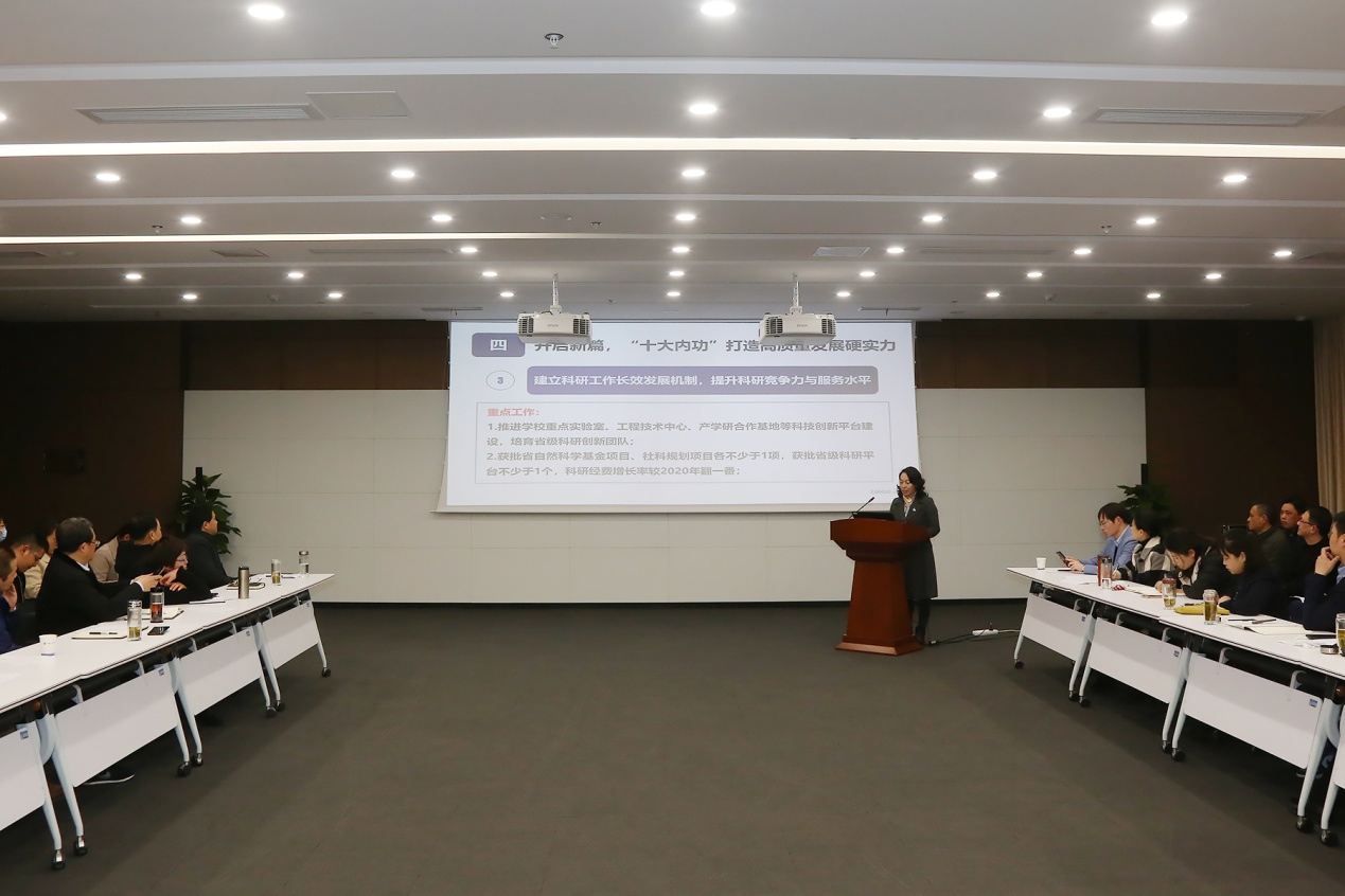 常务副校长王丽作学校2020年度工作报告,对2021年度学校重点工作进行了安排部署。