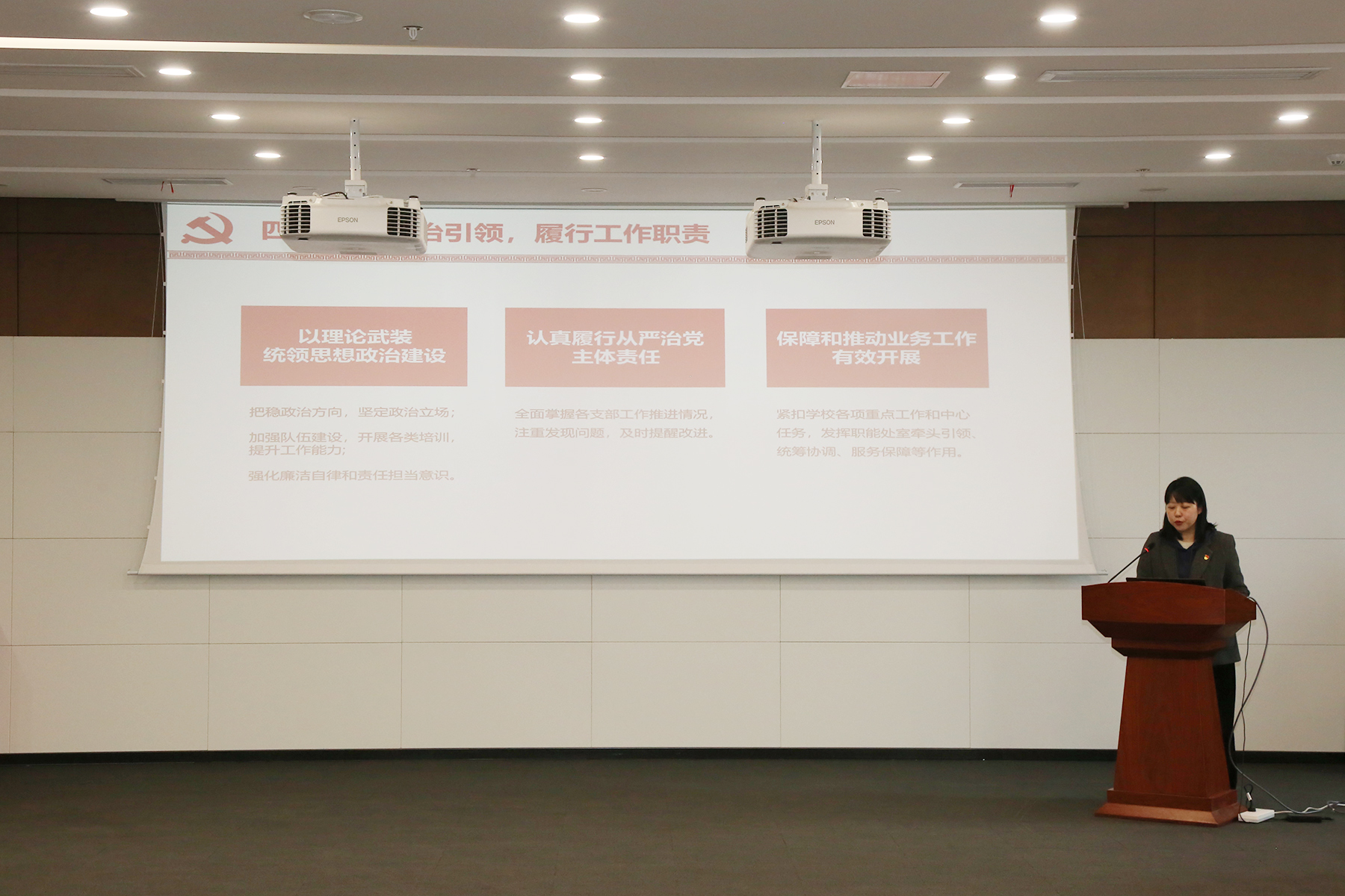 本网讯(通讯员:吴丹 摄影:翟漱文)3月24日,贝博官网2020年度基层党总支/直属党支部书记抓党的建设工作述职评议暨党史学习教育动员大会在科研楼多媒体室召开。全体校领导、各党总支/直属党支部书记,各支部书记,组织员参加会议。本次会议由校党委委员、常务副校长王丽主持。