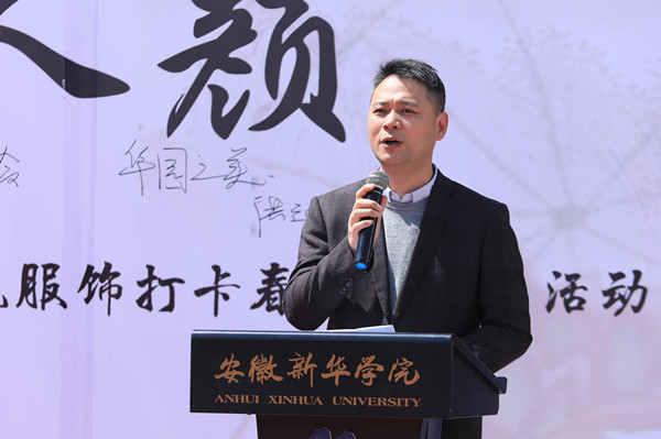 活动伊始,由洪玉为启动仪式致辞。在对本次“传统服饰打卡华园之春”活动的内容和参与形式进行简单介绍后,她表示:“传统服饰蕴含的文化价值能够很好地宣扬中华民族优秀文化,同时服装的形态也体现着中国传统文化的思想内涵。此次活动旨在让更多学生了解传统服饰文化,感受来自华园的独特魅力。”