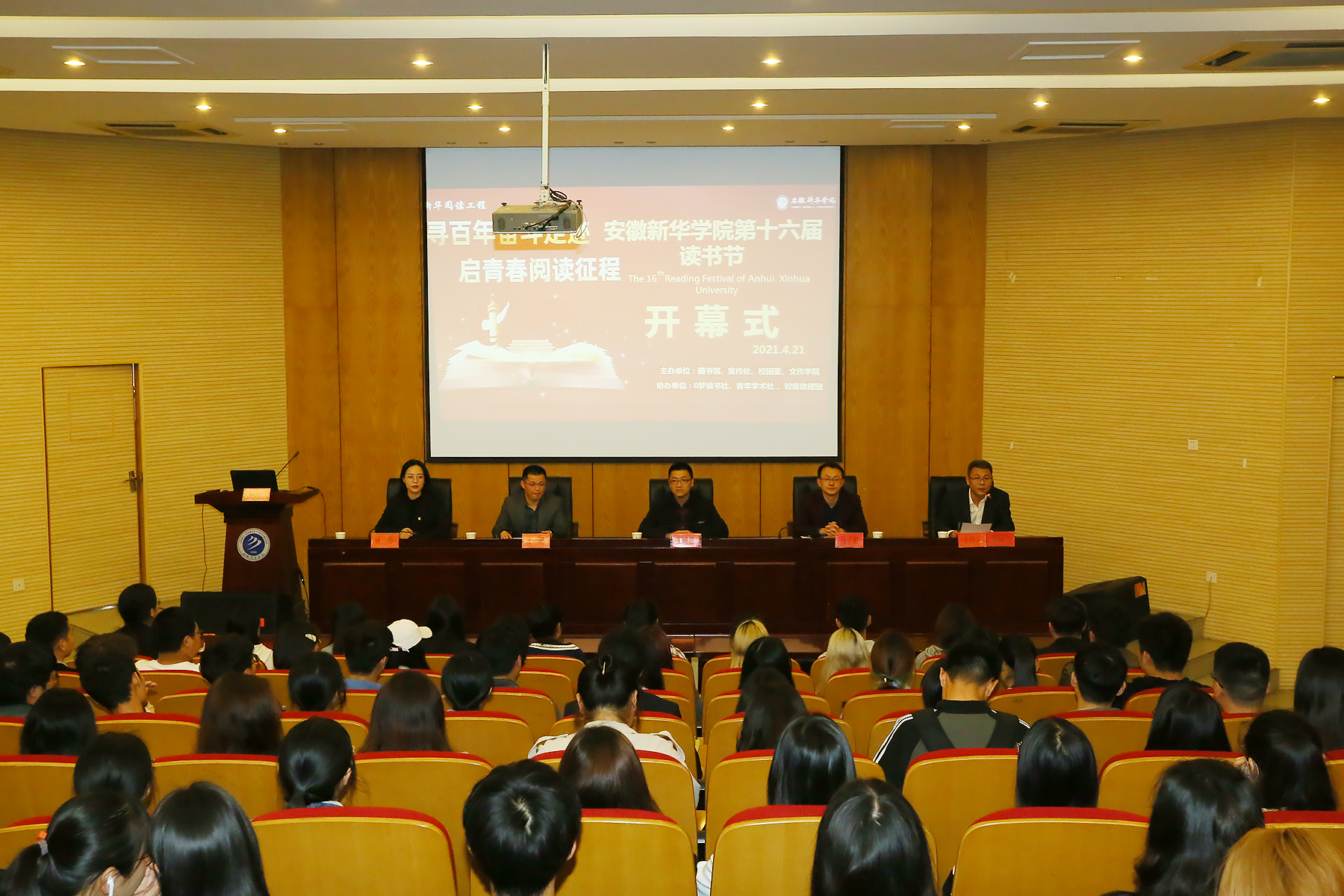 本网讯(通讯员:严素霞 摄影:翟漱文)人间四月芳草绿,春花烂漫读书时。为大力营造“好读书,读好书”的校园文化氛围,庆祝中国共产党成立100周年,4月21日下午,贝博官网第十六届读书节在学术报告厅隆重开幕。校长助理王琦进、图书馆副馆长汤干君、文化与传媒学院副院长王鹏、校团委副书记计羚以及师生代表参加开幕式,开幕式由图书馆副馆长邵国川主持。