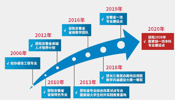 2006年,BB贝博艾弗森官方网站正式开办通信工程专业,经过多年的建设与发展,通信工程专业已成为安徽省特色专业、安徽省专业综合改革试点专业、安徽省卓越工程师计划实施专业。2019年获批“双万计划”省级一流本科专业建设点,2020年获批国家级一流本科专业建设点。