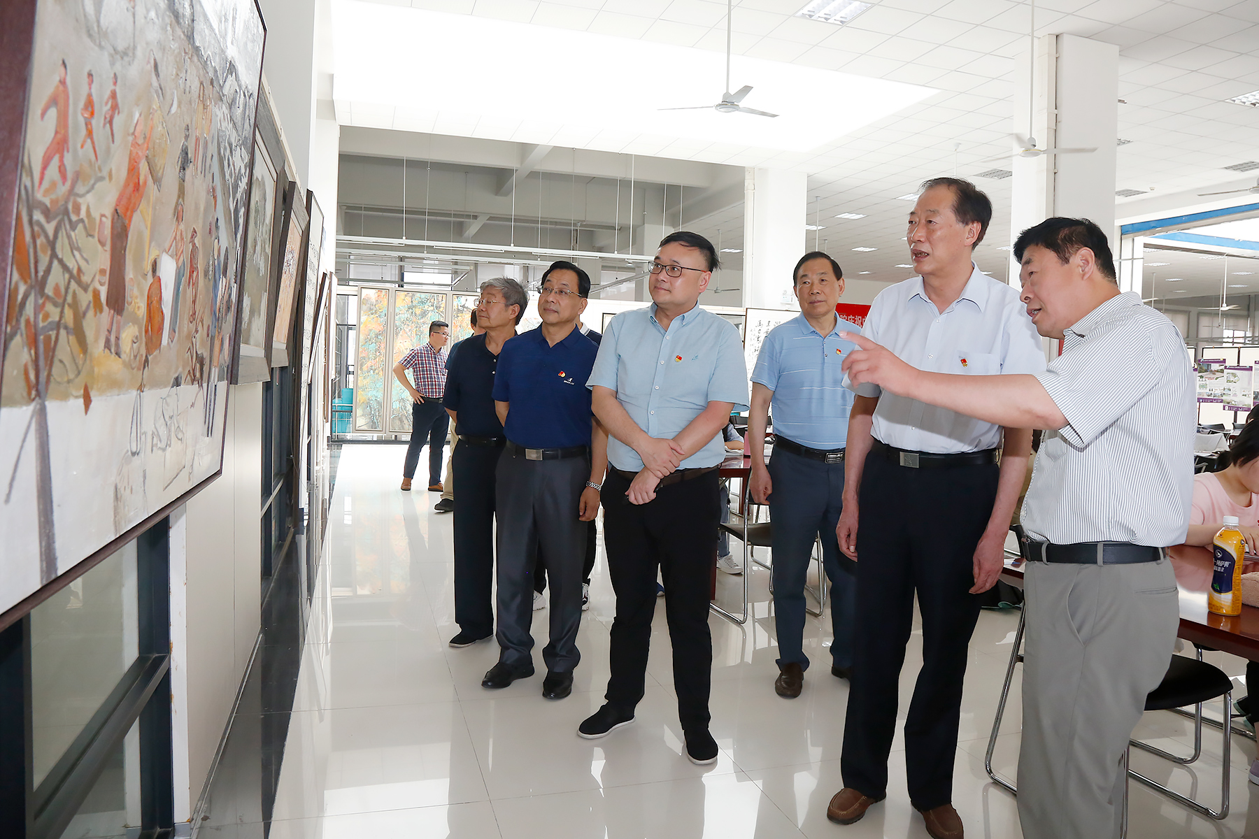 本网讯(通讯员:彭智)为庆祝中国共产党成立100周年,向党的生日献礼,贝博官网艺术学院师生认真策划与组织,积极创作,6月18日,庆祝中国共产党成立100周年师生作品展开幕。艺术学院江河院长、江建龙副教授等人的优秀作品悉数登场,引来师生驻足观看。
