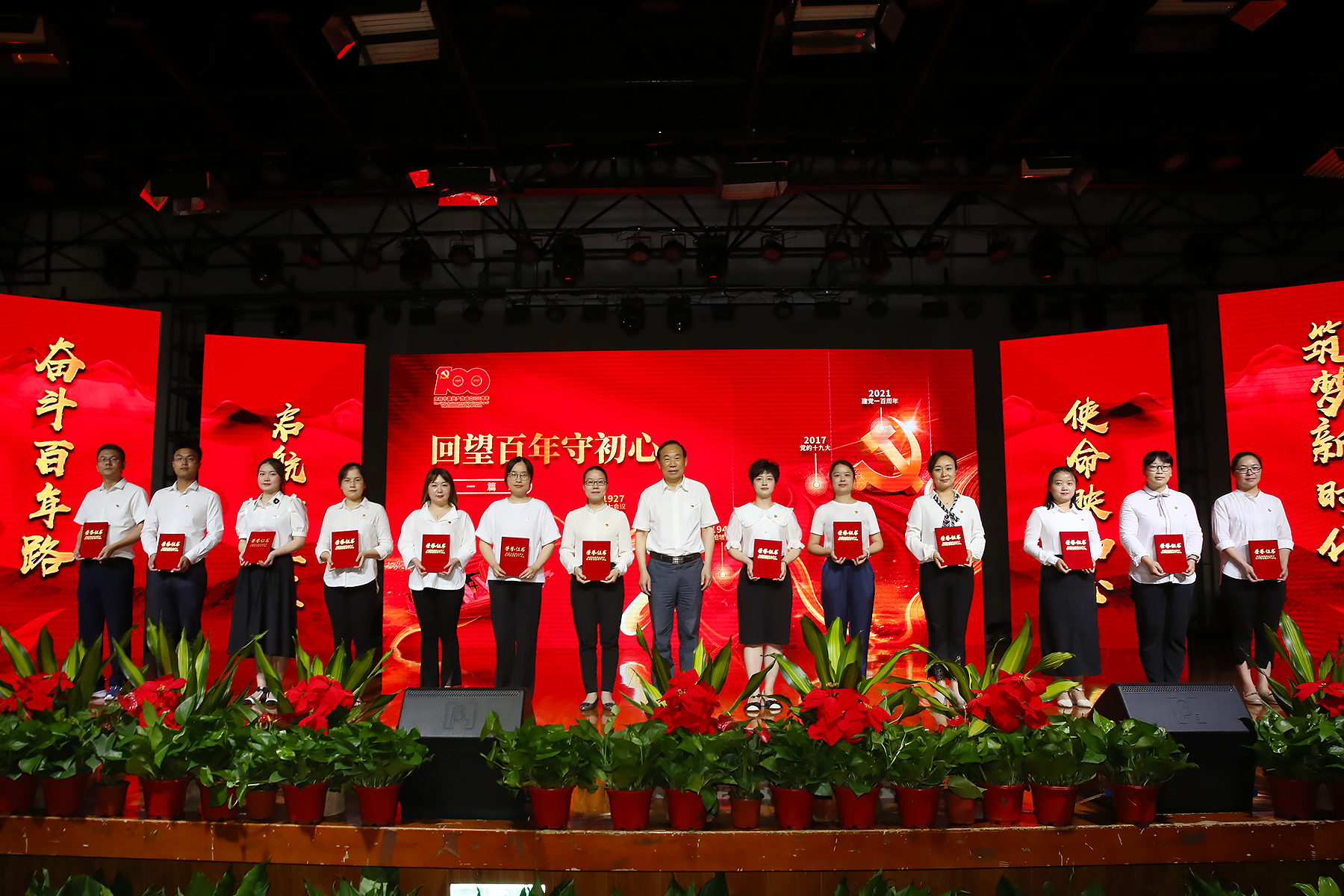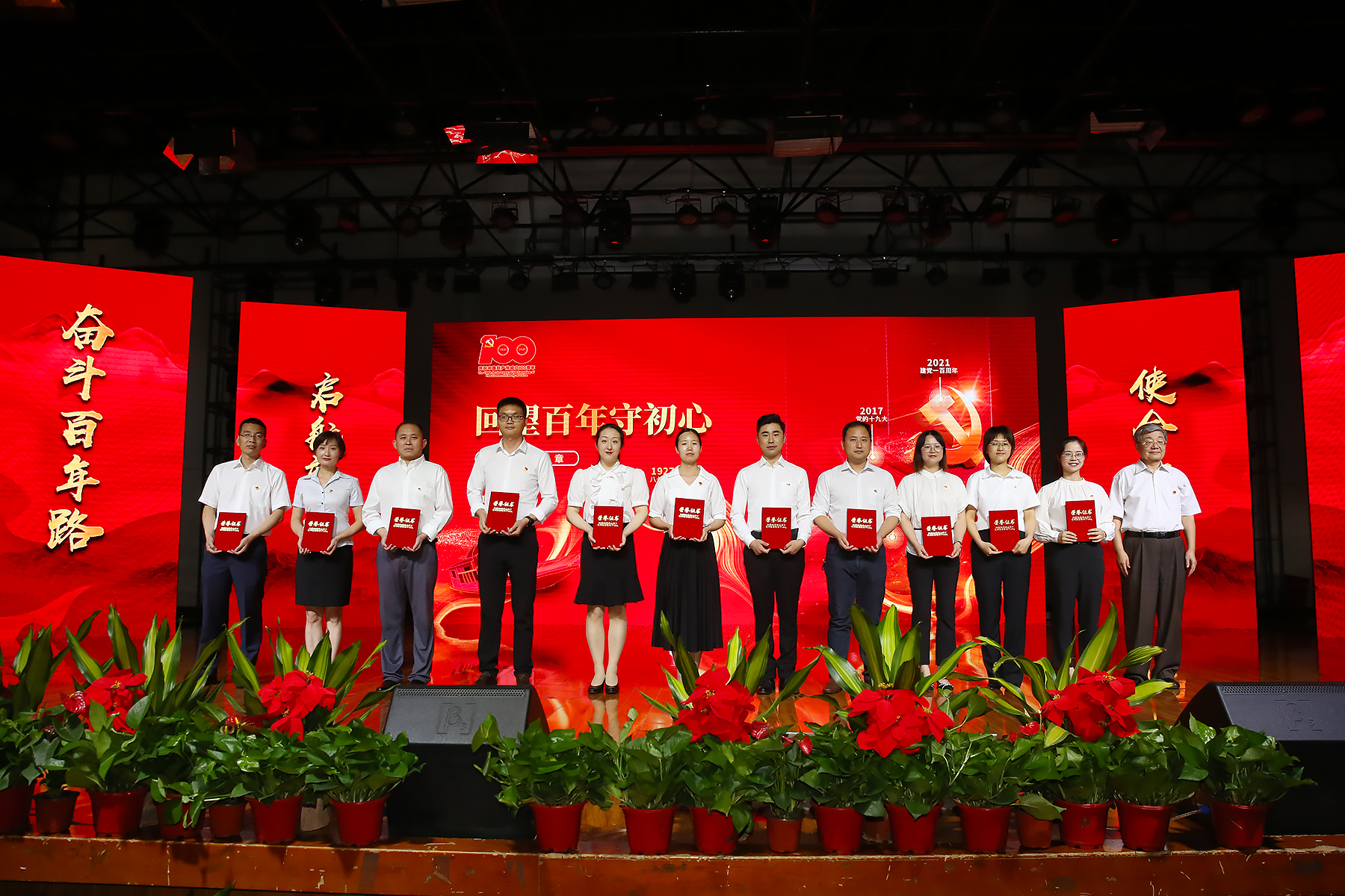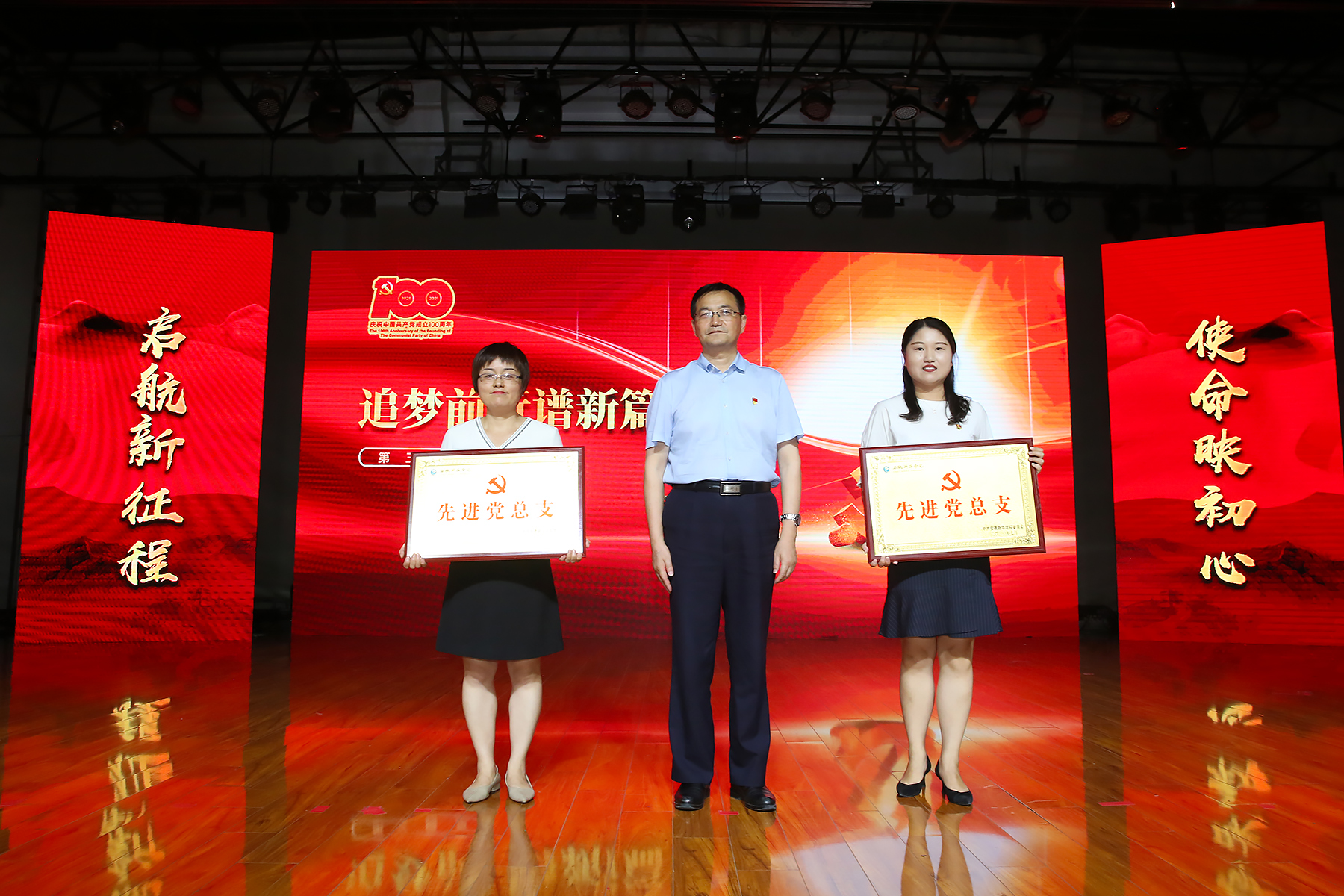 表彰大会分为“回望百年守初心”“以史铸魂担使命”“追梦前行谱新篇”三个篇章。