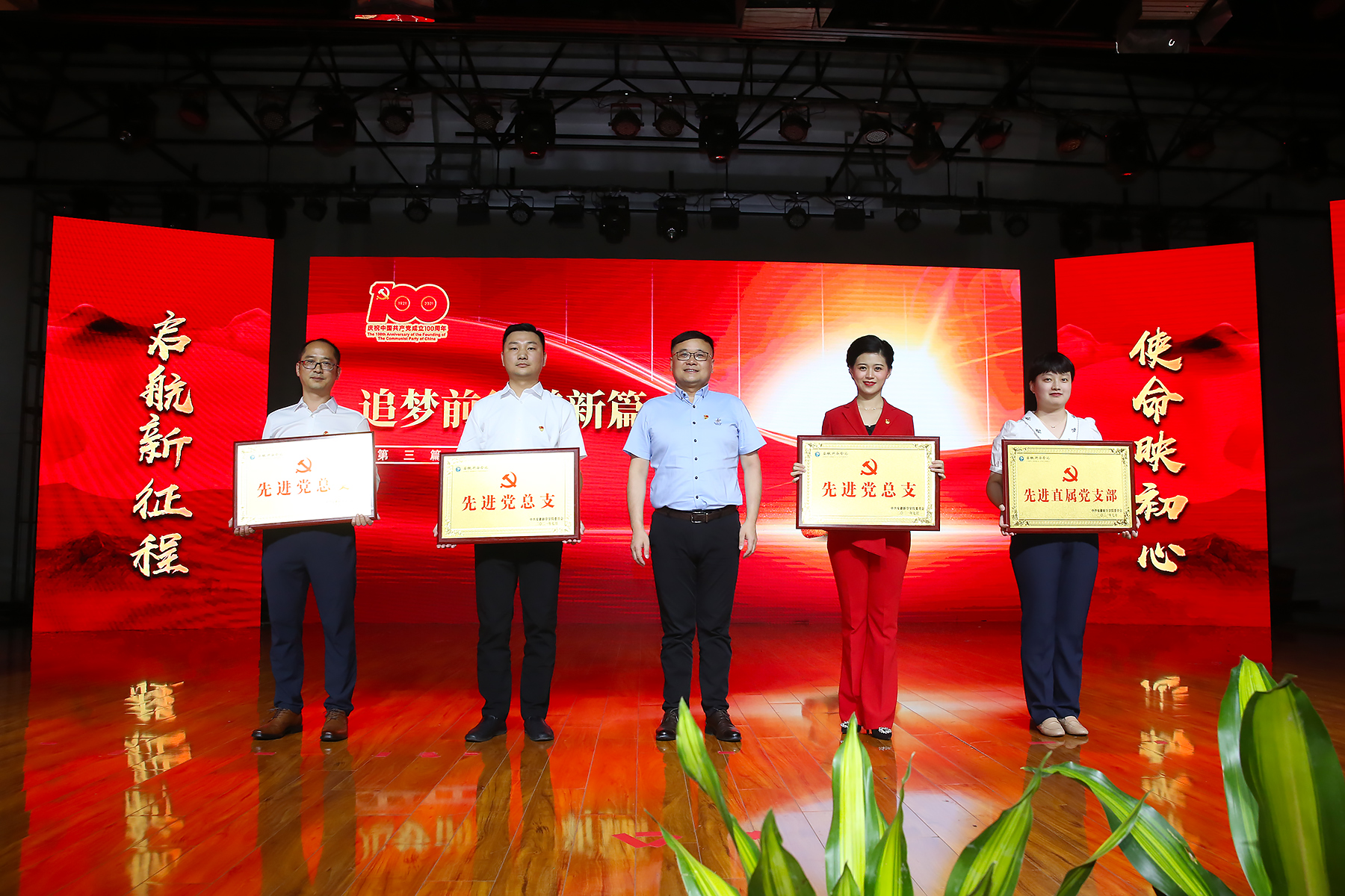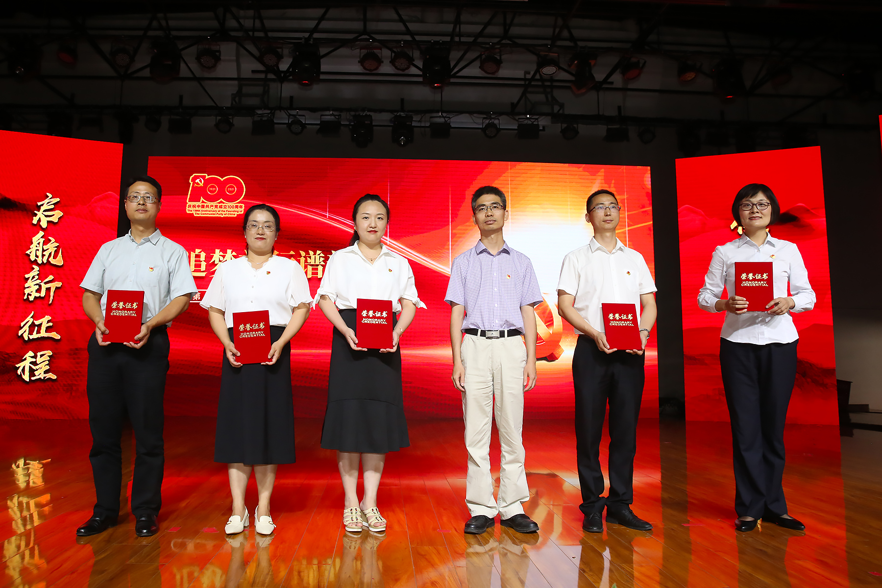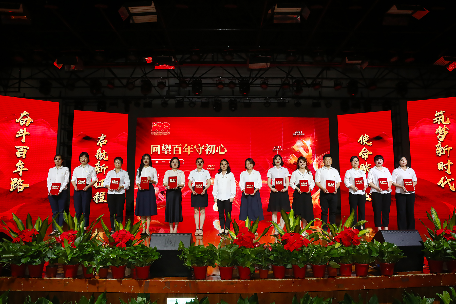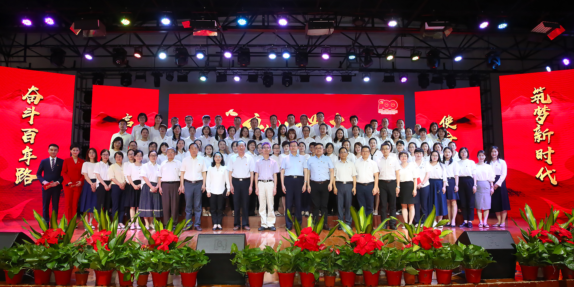 表彰大会分为“回望百年守初心”“以史铸魂担使命”“追梦前行谱新篇”三个篇章。