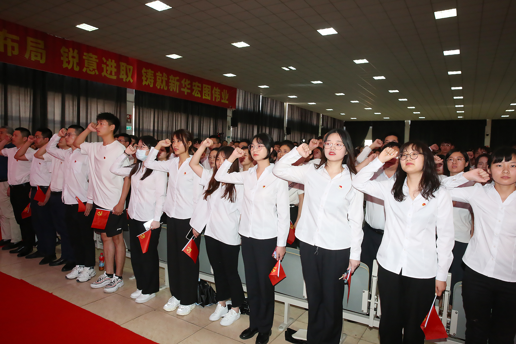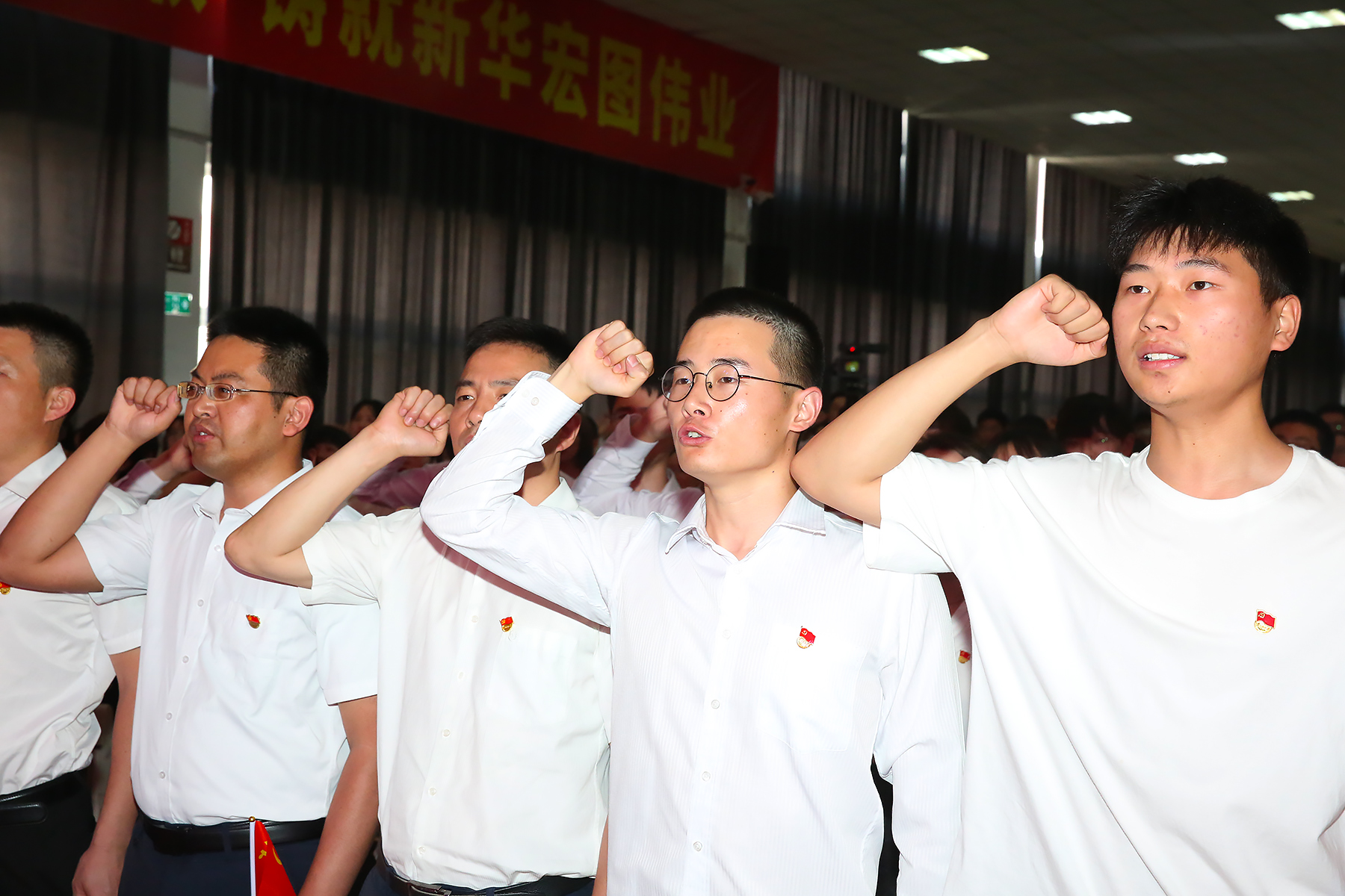 随后,邸建伟带领全体党员重温入党誓词,面向党旗庄严宣誓。