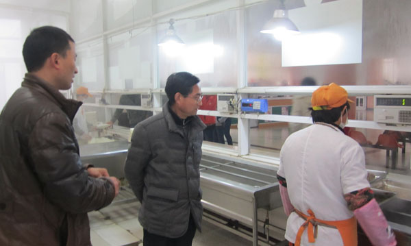 在总务处相关人员的陪同下,袁种宝首先对各家食堂的人员到位情况及供餐设备的运行情况进行详细询问和了解,随后深入后堂操作间逐一检查各家食堂开学期间的后厨准备情况及食堂整体环境卫生、餐具供应及消毒情况,并对现场发现的问题提出整改意见,要求各家食堂务必全力保证开学期间的食品卫生和饭菜质量。