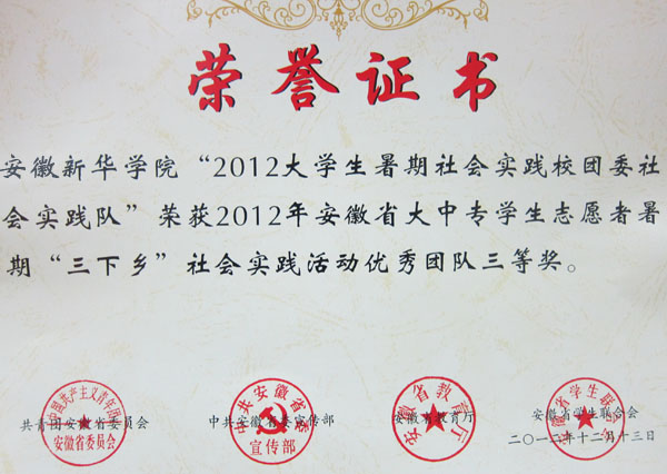 本网讯(通讯员:洪威)近日,团省委、中共安徽省委宣传部、省教育厅与省学联联合下发了2012年安徽省大中专学生志愿者暑期文化科技卫生“三下乡”社会实践活动评选结果的通报,贝博官网“2012大学生暑期社会实践校团委社会实践队”荣获省级优秀团队三等奖,团委王帆老师指导的调研课题《高新区两湖环境的调查与研究》、洪威老师指导的《皖南泾县茂林镇发展中的思考》均荣获优秀调研课题三等奖。