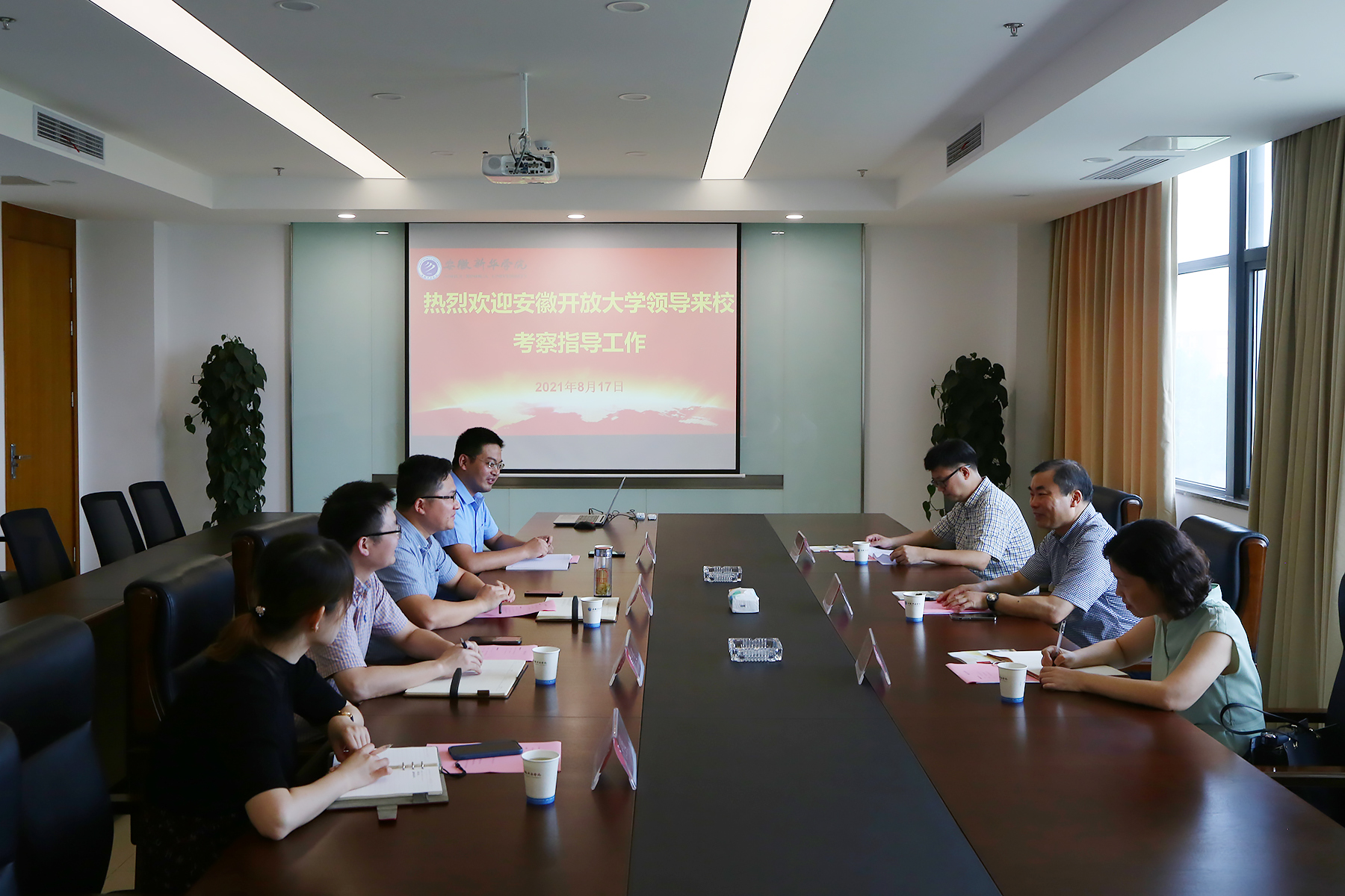 本网讯(通讯员:汪园 摄影:翟漱文)8月17日上午,安徽开放大学招生与系统办公室处长李秀华、开放教育学院院长刘盛峰一行来贝博官网考察交流工作。副校长贺行佳,科技学院执行院长孙成伟,副院长俞士毛、崔风波,教学秘书汪园出席会议,会议由孙成伟主持。