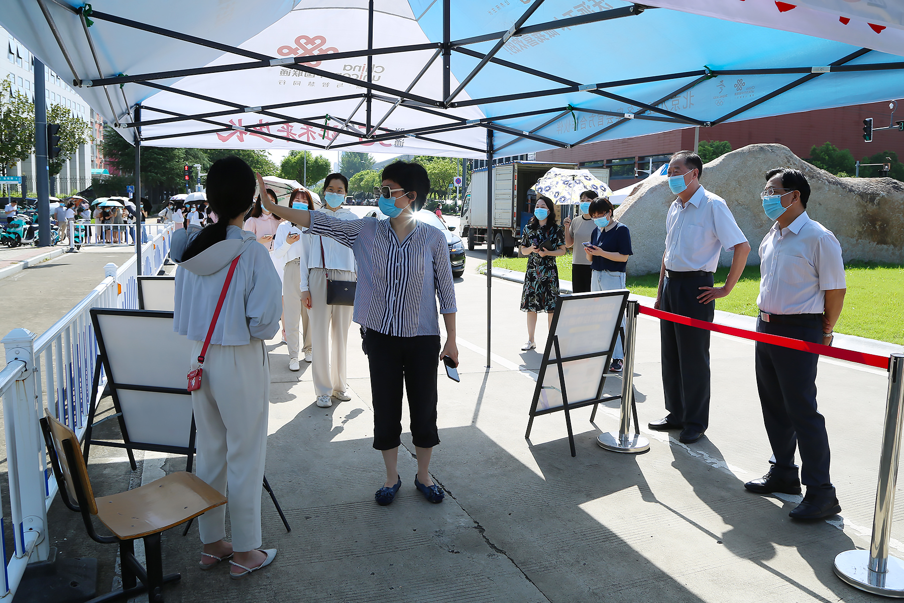本网讯(通讯员:王亚君 摄影:翟漱文)为科学规范地开展新冠肺炎疫情防控工作,保证学生返校当日和新生开学后的各项工作有序开展,切实保障广大师生的生命安全和校园稳定。根据省委省政府、教育厅相关防控要求,8月25日上午,贝博官网组织开展了2021年秋季开学疫情防控演练。校执行董事长储国定,省督导专员、校党委书记邸建伟,常务副校长王丽,副校长贺行佳,校长助理邵玲一行带队到场检查指导。