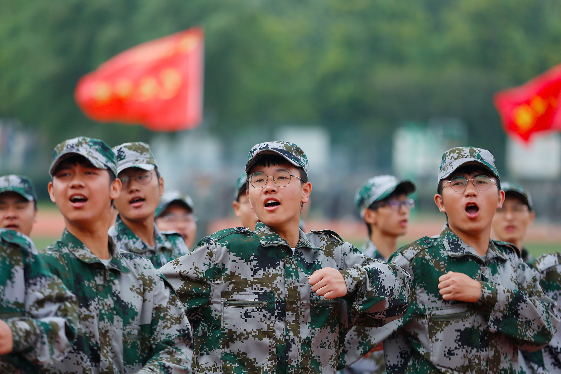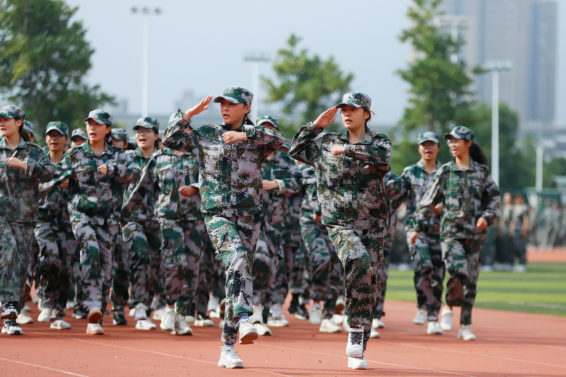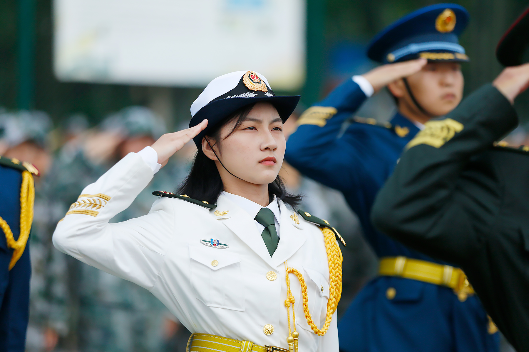 随后,军训分列式开始。目光坚定,步伐整齐,摆臂抬腿的每一个角度,都映照着训练的日日夜夜,青春热血燃爆全场。勇往直前的步伐,是对青春和理想最有力的宣告。