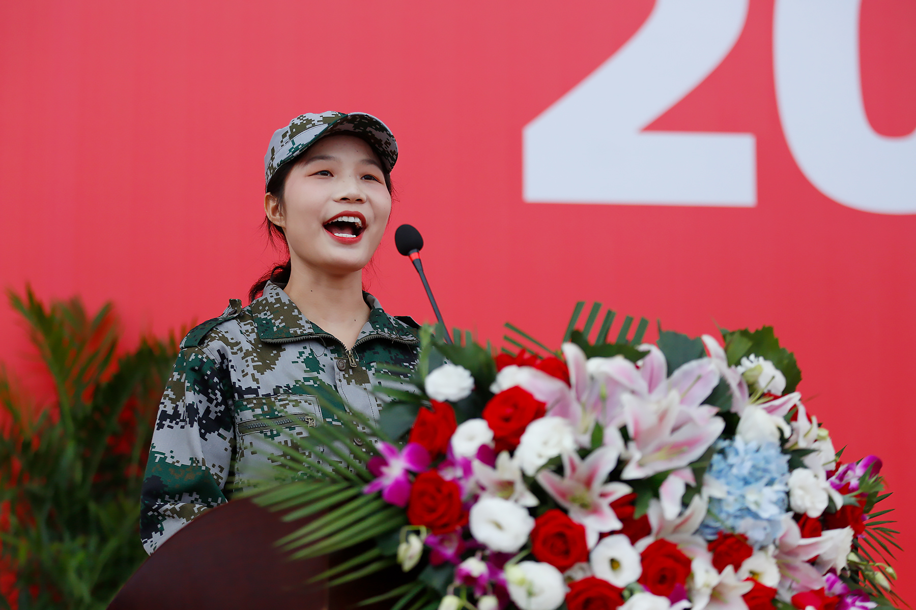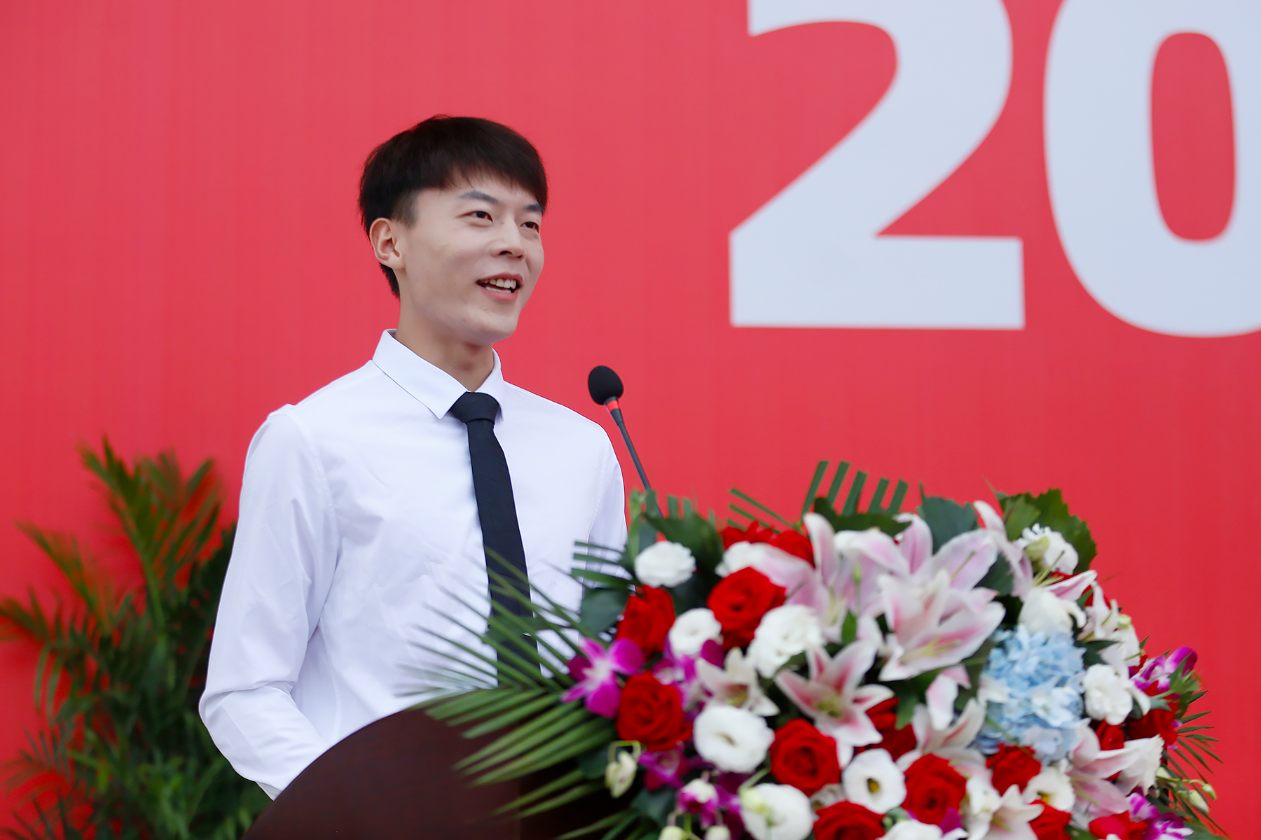 校青年志愿者联合会主席张冠同学作为老生代表发言:“新华园是梦想生根、发芽和开花的地方!让我们共同恪守‘厚德、求真、博学、创新’的校训,拿出‘天生我才必有用’的信心,‘吹尽黄沙始到金’的毅力,‘直挂云帆济沧海’的勇气,抓住新的机遇,迎接新的挑战。”