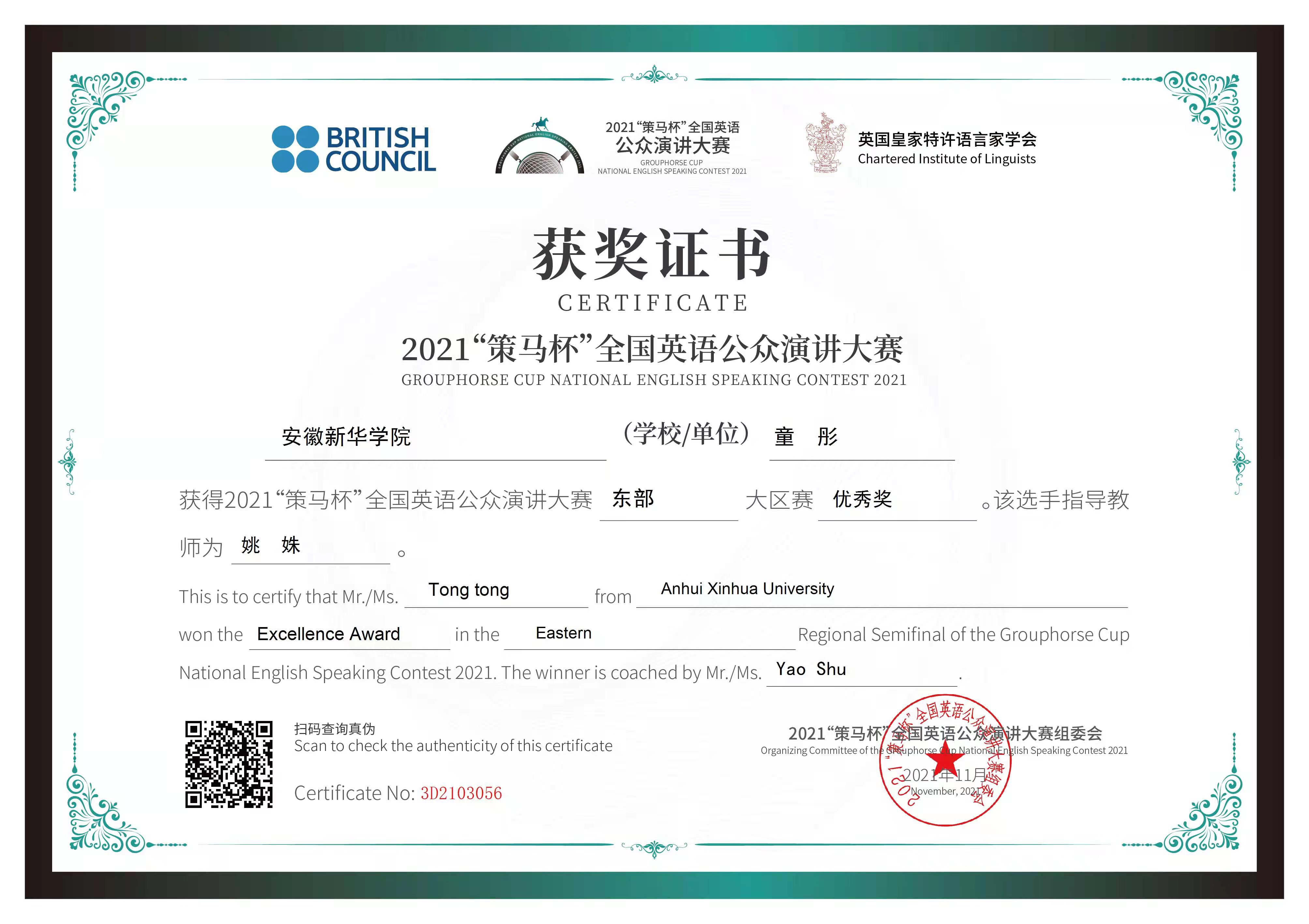 优秀!贝博官网学子在2021“策马杯”全国英语公众演讲大赛东部大区赛中喜获佳绩