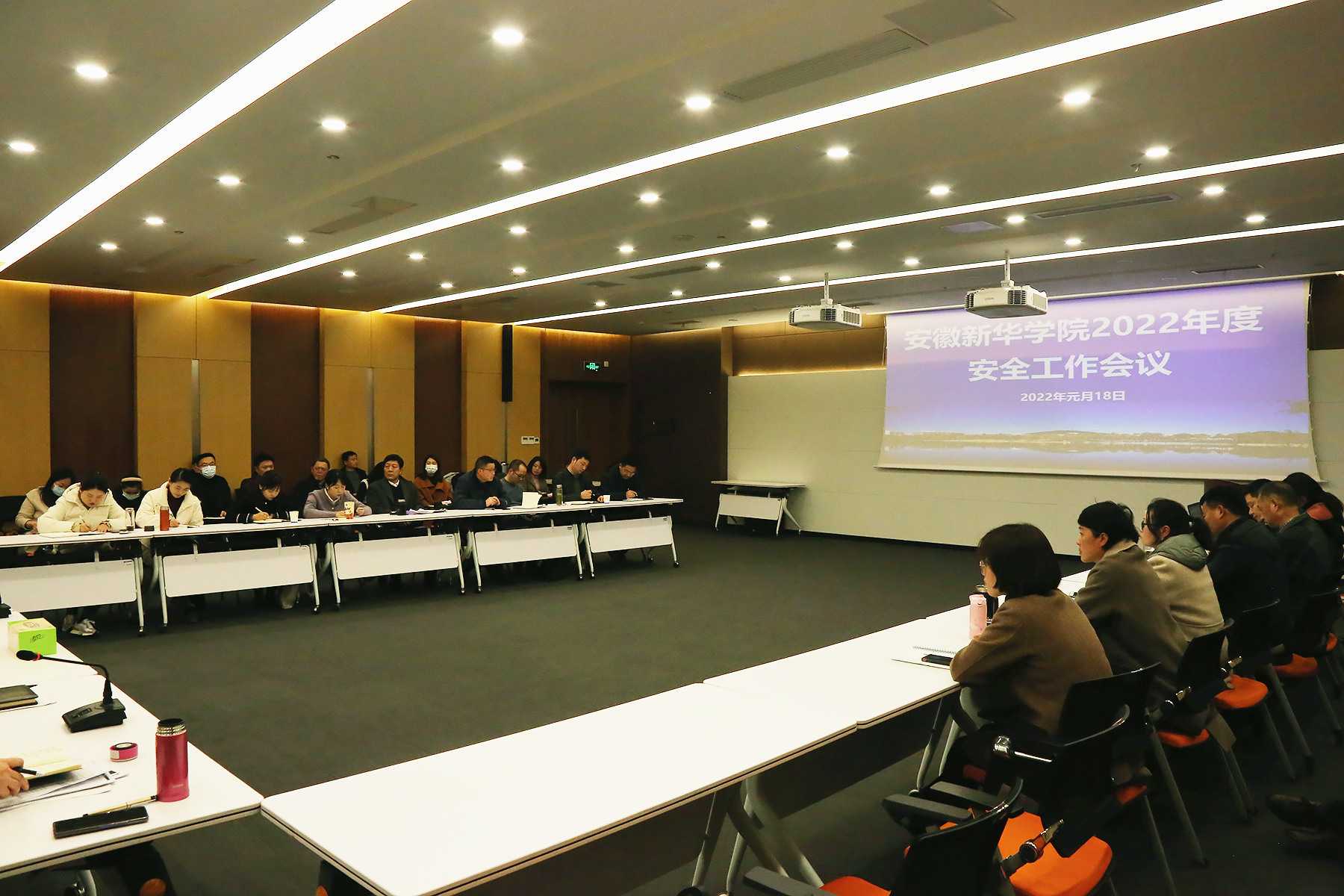 会议开始,学生处处长助理王强亚从学生安全管理、团学等六个方面汇报了2021年度学生管理情况和2022年度学生工作要点。保卫处副处长仇陶代表学校安全工作委员会作2021年度安全工作总结及2022年度安全工作部署,报告从九个方面回顾了2021年安全工作开展情况,分析了校园安全形势及存在的问题和对策措施,结合上级有关要求和学校实际情况部署了2022年学校安全稳定工作。