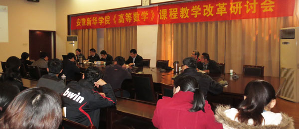 教务处处长李志远主持会议,对高等数学课程教学改革的重要性和必要性进行了分析,强调高等数学课程教学改革对应用型本科院校来说尤为迫切。随后,《高等数学A》、《高等数学C》、《高等数学D》、《医药高等数学》四个课程组负责人分别对所负责课程的教学大纲进行了介绍,并从课程目标、教材选用、授课对象、学时安排、重难点安排、考核方式、成绩评定等方面对课程进行了分析。与会者踊跃发言,就目前高等数学课程在人才培养过程中存在的问题展开了热烈的讨论。对于如何整合高等数学教学内容、课时设置等提出了各自的观点。李志远以同济大学的高数课程学时安排为例,指出贝博官网高等数学的教学内容应增加实验教学和习题课的数量。公课部副主任李烈敏副教授对目前贝博官网高数课程教学改革情况进行发言,提出“改革先改己”,从观念上、心态上、行动上进行改革。李烈敏还从公课部的实际工作出发,对目前《高等数学》教学改革过程中部门已经做的工作(如流水阅卷、评分细则、补考前集中辅导等)、正在做的工作(如试卷命题、辅导材料编写等)以及今后要做的工作(如修订教学内容、推广合适的教学方式、部分内容试行数学实验课等)进行了分析和总结。