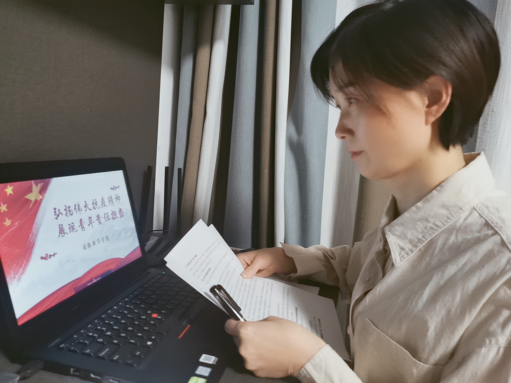 “当前,我们更应该遵守疫情防控法律法规,做到不信谣不传谣、不瞒报疫情、不抗拒排查、不躲避隔离。线上学习也要保持积极的学习态度,只有通过持续学习和努力才能看到更广阔的天地,更好的迎接未来。”大数据与人工智能学院李慧在学习后写下了这样的感受。