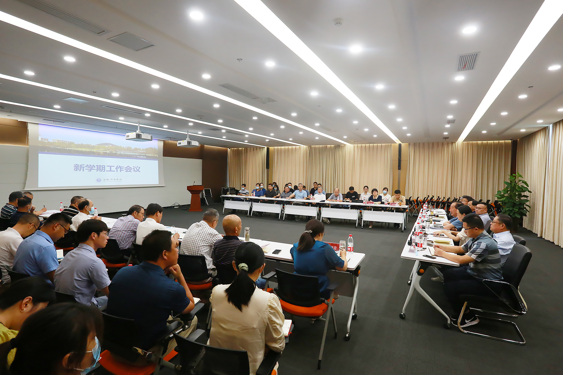22日下午,全体校领导带领各二级学院、职能处室负责人召开了新学期工作会议。会上,校领导分别从招生录取、教学、科研、审核评估、学生管理、校园安全等方面作了新学期工作部署。