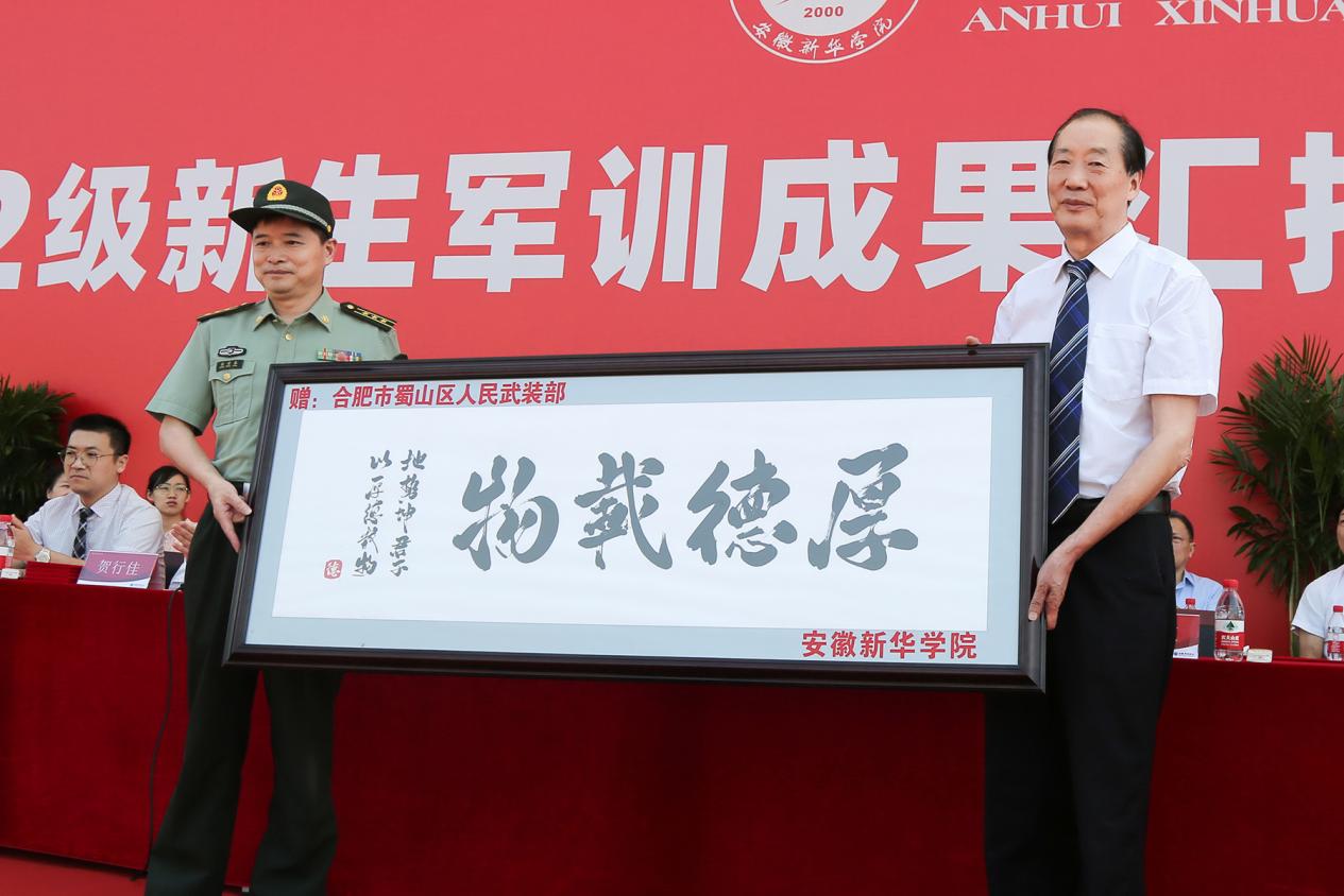 表演结束后,储国定代表学校向承训部队赠送牌匾,张荣春代表承训部队向贝博官网赠送锦旗。