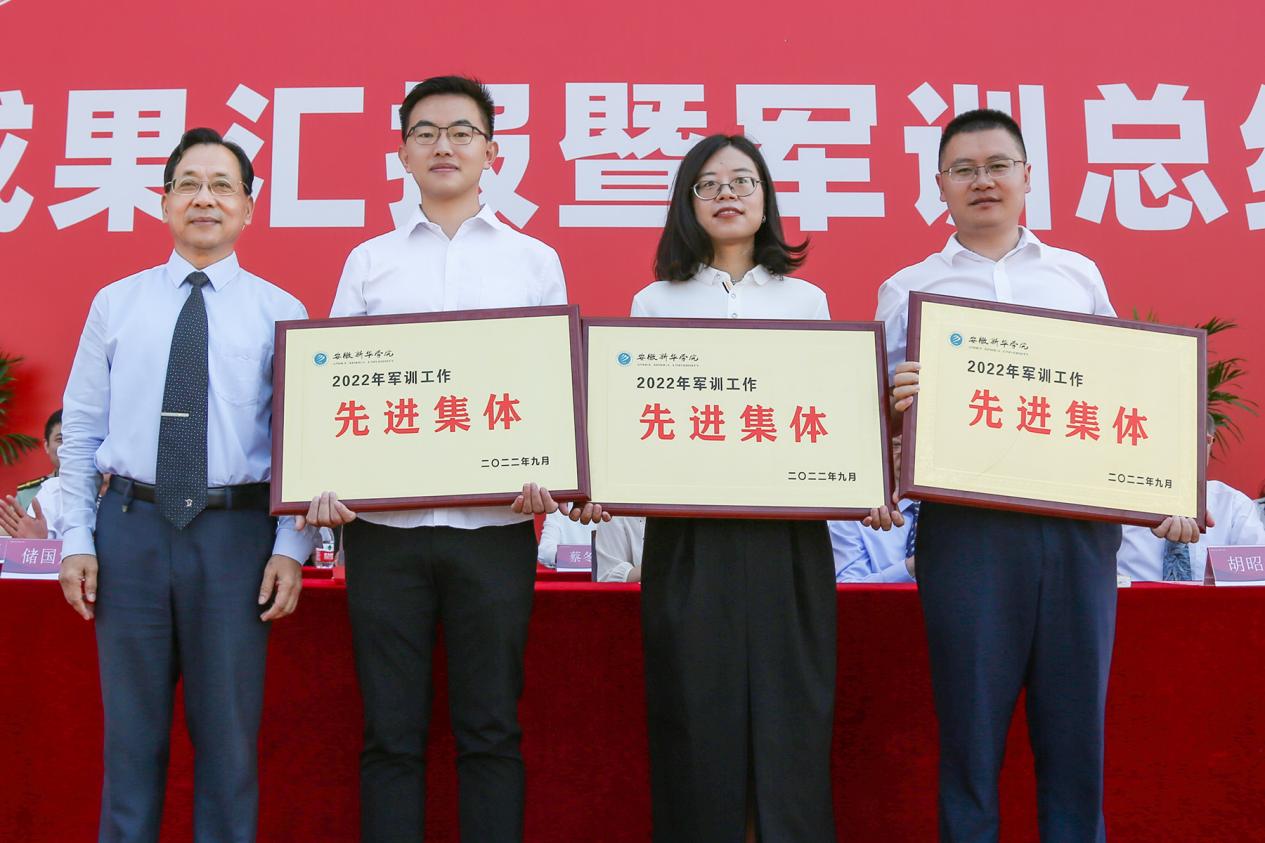 邸建伟为获评军训工作“先进集体”的代表颁奖。