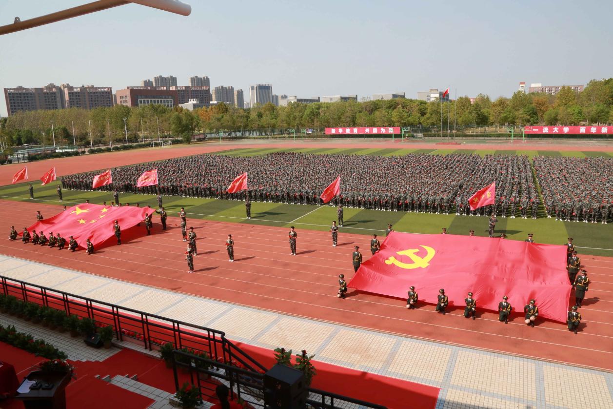 雄壮的国歌奏响,鲜艳的五星红旗在体育场迎风飘扬,军训汇报表演正式拉开帷幕。英姿飒爽的国旗护卫队健步入场,国旗方阵引领着51个新生军训方阵依次通过主席台。身穿迷彩服的新生们军姿严整、步伐铿锵、口号响亮,他们用标准的军礼、整齐的队伍、认真的态度、饱满的热情向主席台致敬,展现了新华园学子坚韧不拔、昂扬向上的精神风貌,赢得师生阵阵掌声。