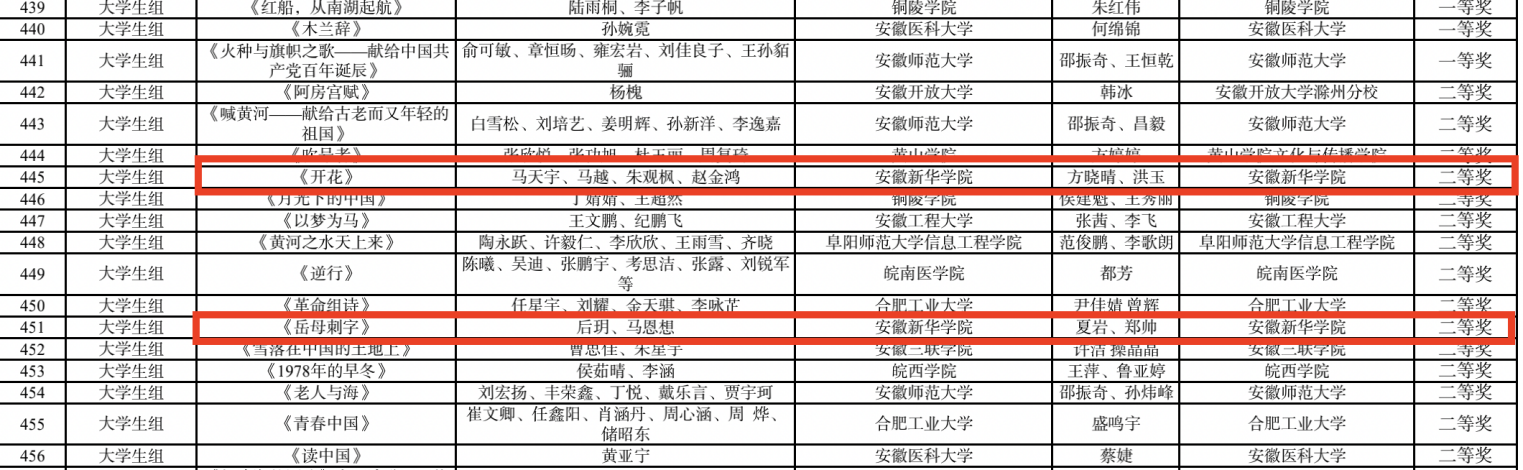文化与传媒学院老师的作品《开花》《读中国》《闪耀吧,青春的火光》均获得教师组一等奖,这也是贝博官网老师首次三组作品全部入选国赛。文化与传媒学院学生马天宇、马越、朱观枫、赵金鸿的作品《开花》(指导教师:方晓晴 洪玉 )、后玥、马恩想的作品《岳母刺字》(指导教师:夏岩 郑帅)获得大学生组二等奖;张欢欢、魏文杰的作品《青春》(指导教师:翟春翔 方晓晴)获得大学生组三等奖,其中作品《开花》入围国赛。