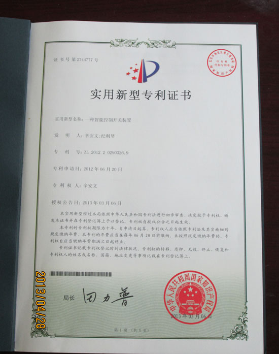 本网讯(通讯员 纪利琴)近日,贝博官网电子通信工程学院纪利琴老师和2010级应用电子专业学生辛安文共同发明的“一种智能控制开关装置”通过国家实用新型专利审核,专利号为2012.2.0290326.9。