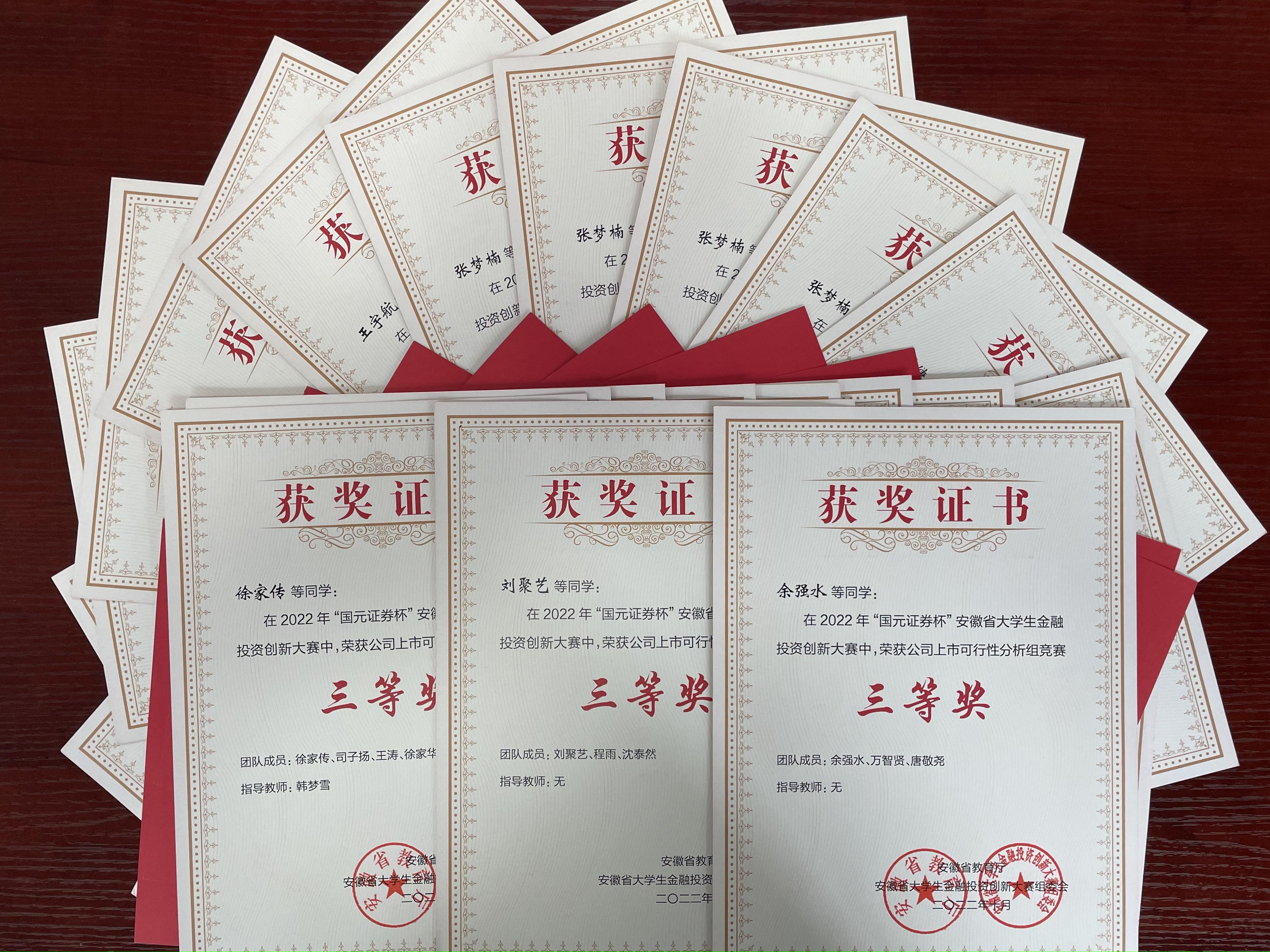 贝博官网学子在第七届“国元证券杯”安徽省大学生金融投资创新大赛中再创佳绩