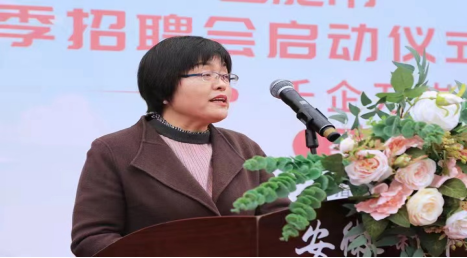 王素苗副主任代表安徽省大中专毕业生就业指导中心讲话。她充分肯定了此次“千企百岗进百校”活动开展的重要性和必要性,并提出了相关的工作要求。