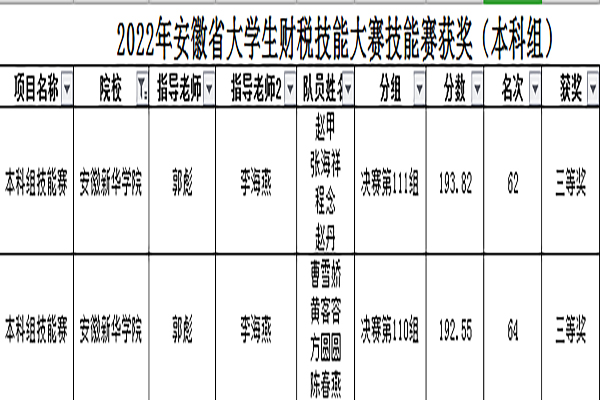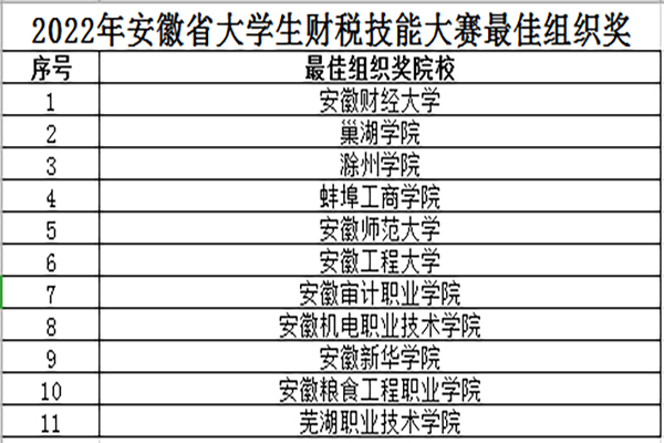 本网讯(通讯员:陈伟、夏敏)近日,2022年安徽省大学生财税技能大赛成功落下帷幕,贝博官网财会与金融学院共有1支团队荣获省级一等奖,9支团队荣获二等奖,16支团队荣获三等奖,总获奖数量创学校在该项赛事中的最好成绩。同时,贝博官网连续两年获赛事最佳组织奖。